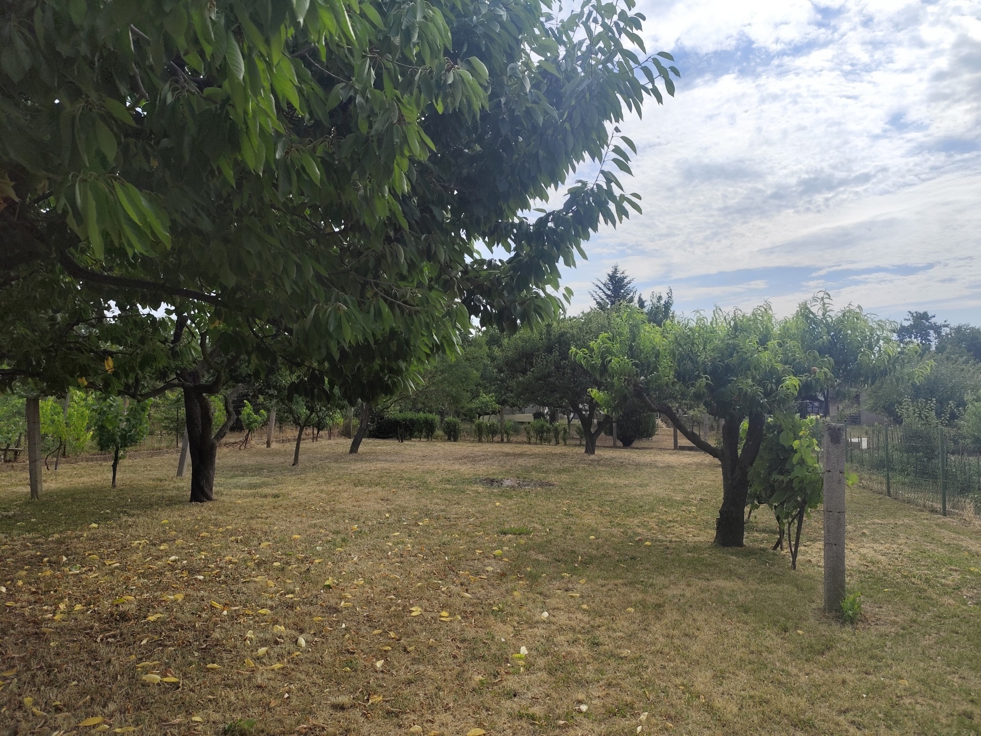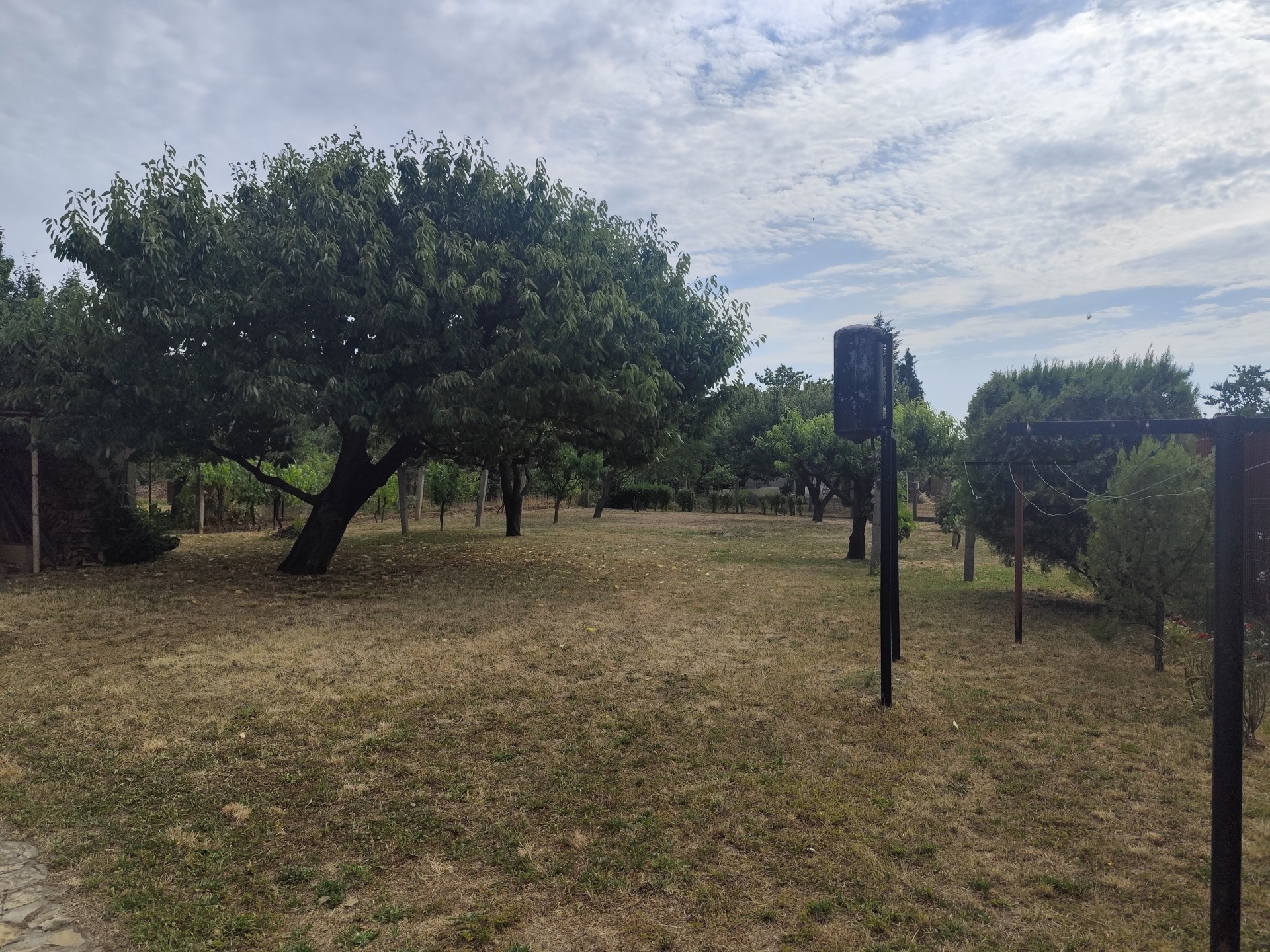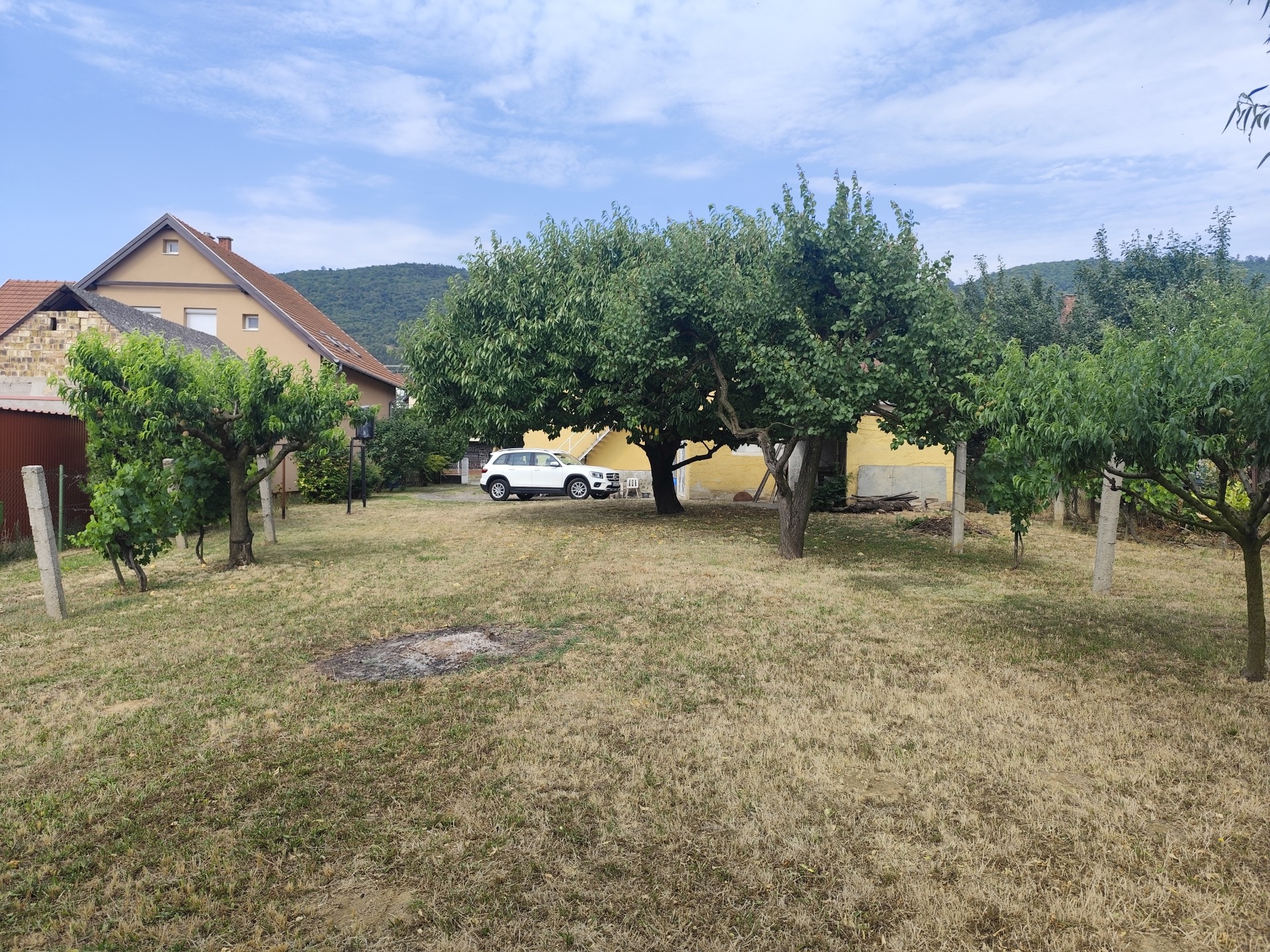 A ház mögött található egy kisebb tároló, ebből nyílik a pince lejárata is. A garázs egy autó számára biztosít helyet, mellette fatárolóval. Az udvar füvesített, elöl virágos kerttel, hátul gyümölcsfákkal, teljesen körbekerített.