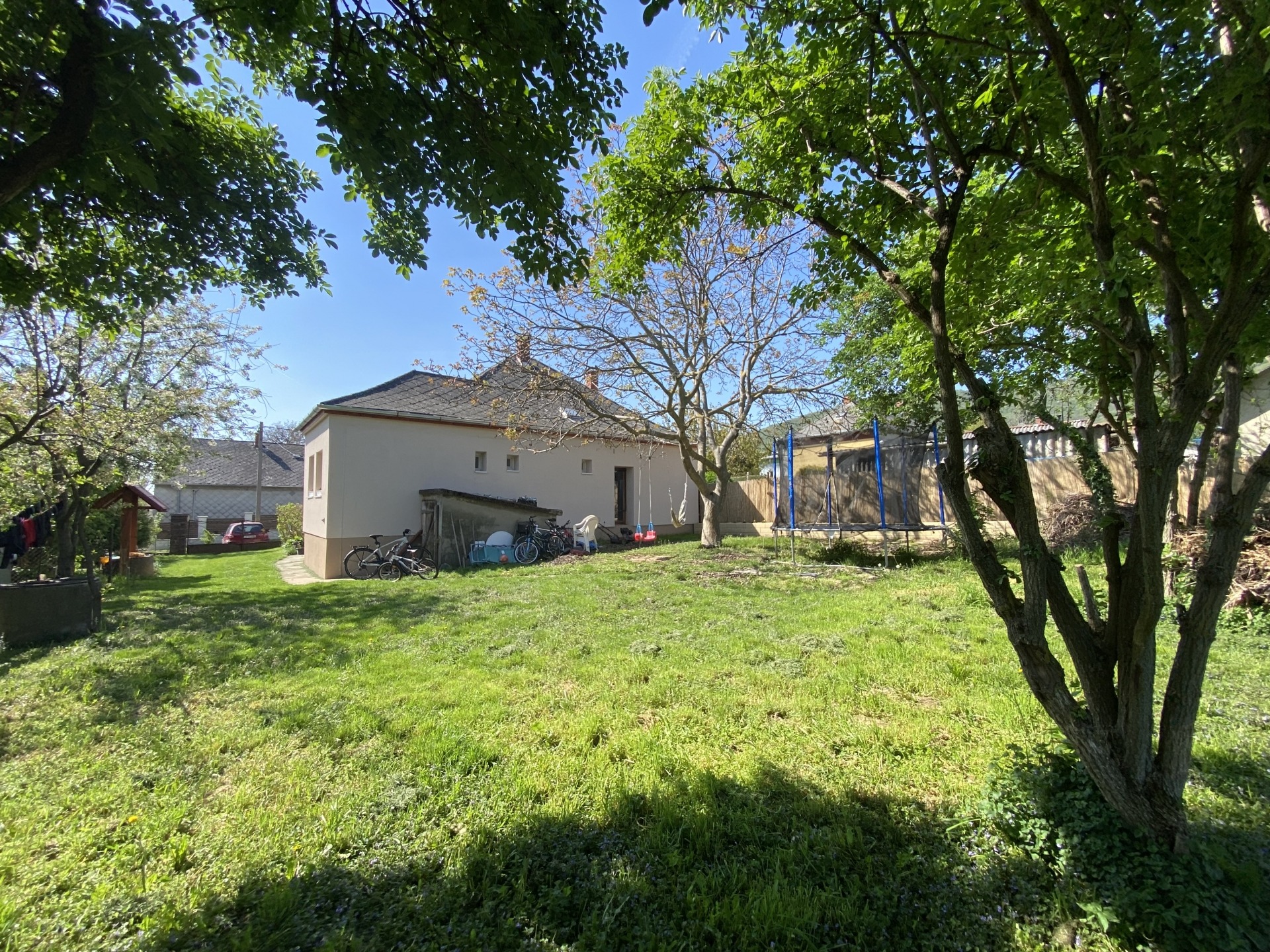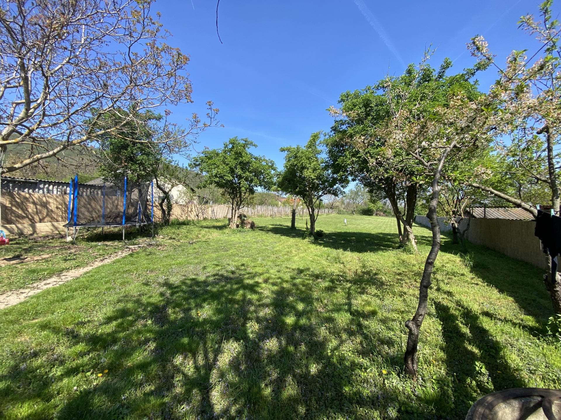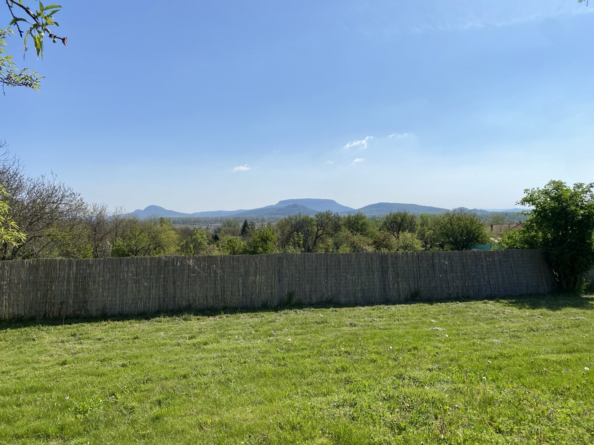 Az 1949 m²-es telek teljesen körbekerített, sík, kis előkerttel, gyümölcsfákkal és gondozott gyeppel. A kert hátsó részében, a mandulafa alatt ülve pazar kilátás tárul elénk: gyönyörködhetünk a Szigligeti várban és a tanúhegyekben.