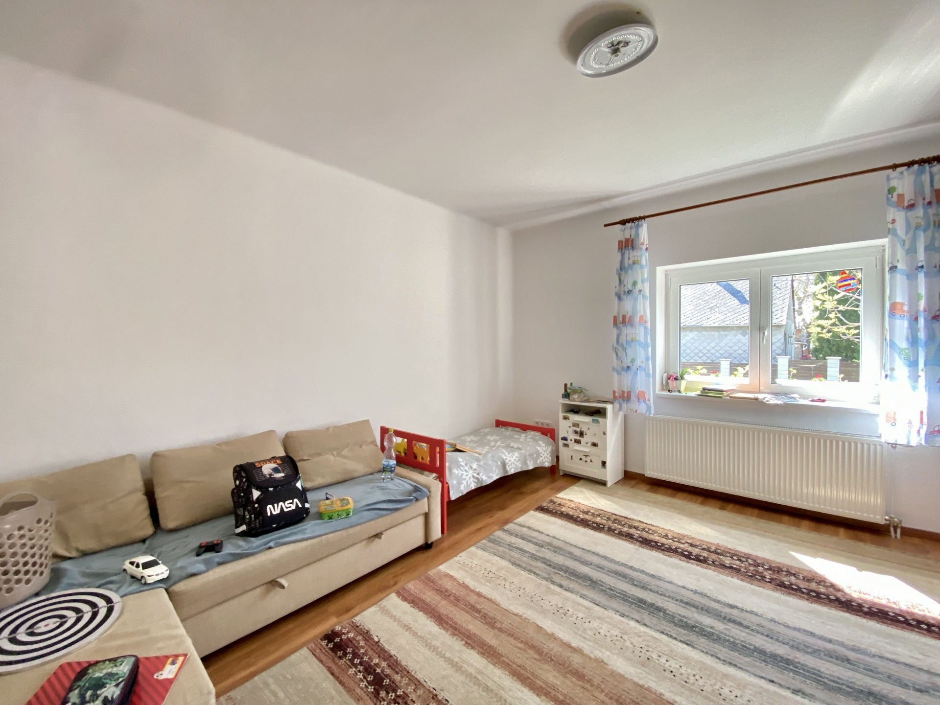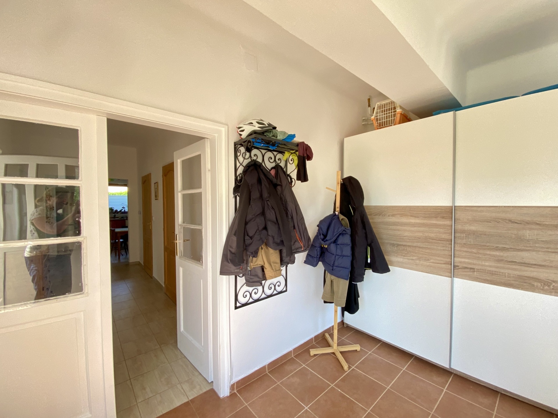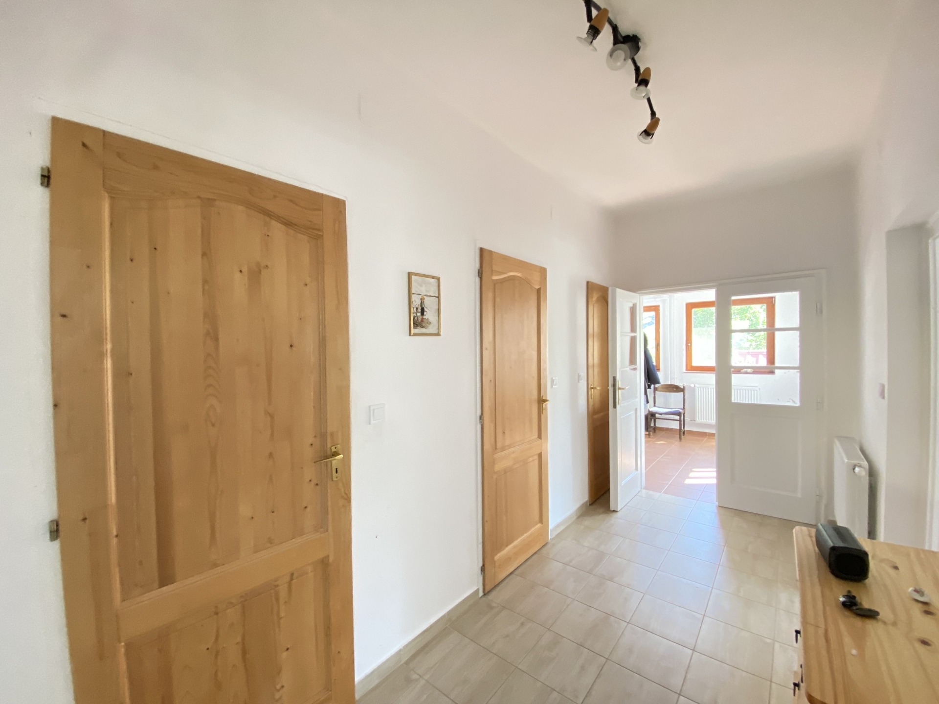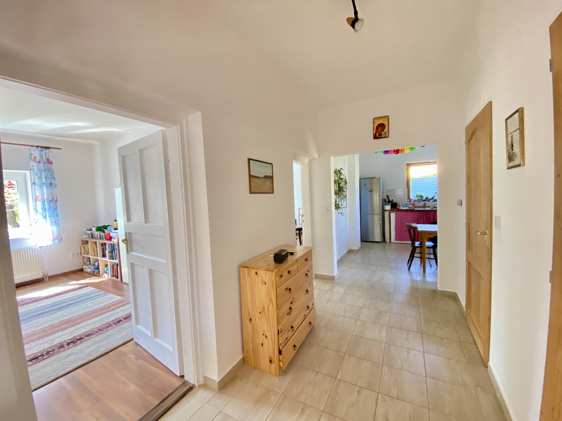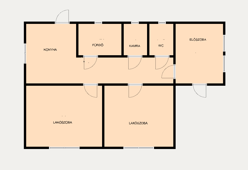 A ház kiváló elosztású, tágas és világos. Az előszobából egy központi folyosóra érkezünk, ahonnan nyílik két szoba, a konyha, a fürdőszoba, a külön toalett, valamint a kamra padlásfeljáróval.
