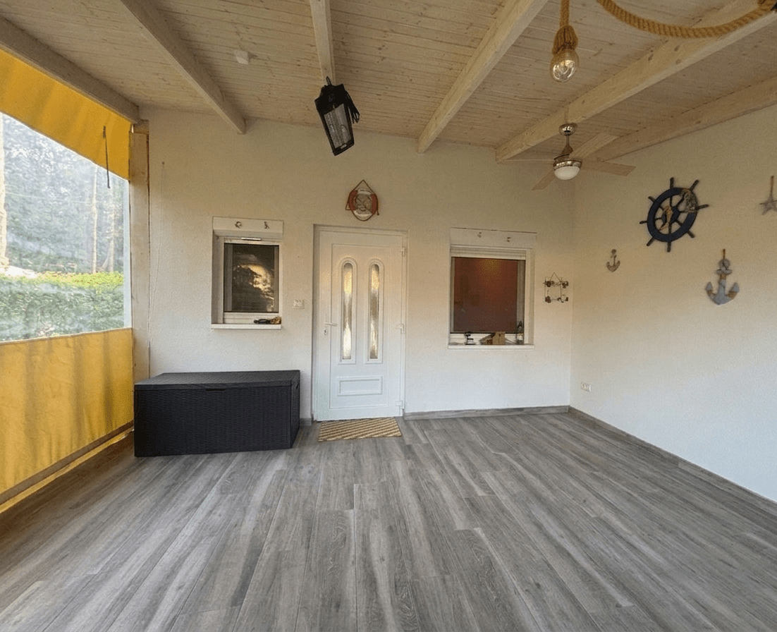 Továbbá növeli az életteret: a 8 m²-es szeparált első terasz tökéletes a reggeli kávé mellé, a 21 m²-es hátsó fedett terasz pedig a családi ebédek és a hosszú, borozós balatoni esték főszereplője.