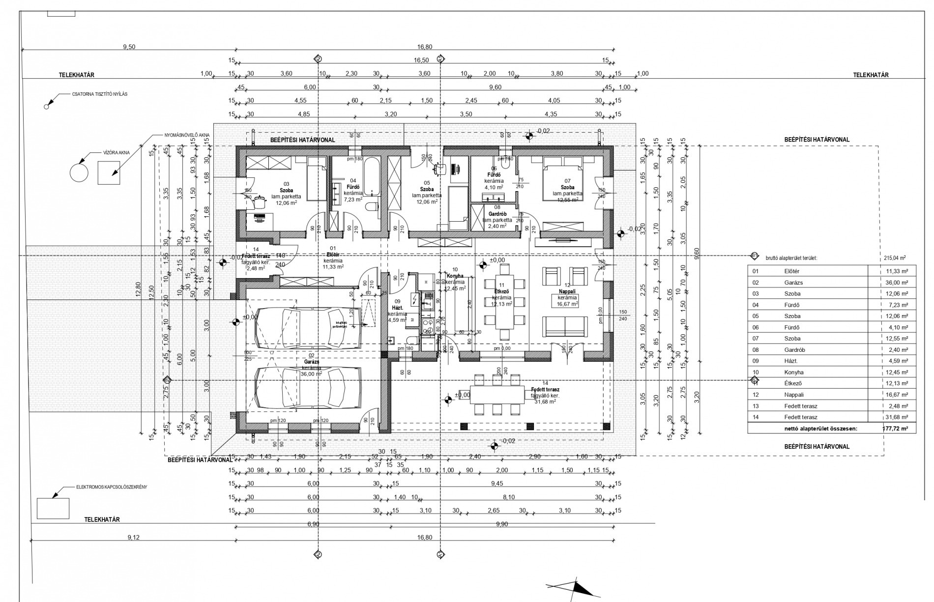 Kaputól jobbra lettek elhelyezve a vízóra, nyomásnövelő, öntözőrendszer aknái.