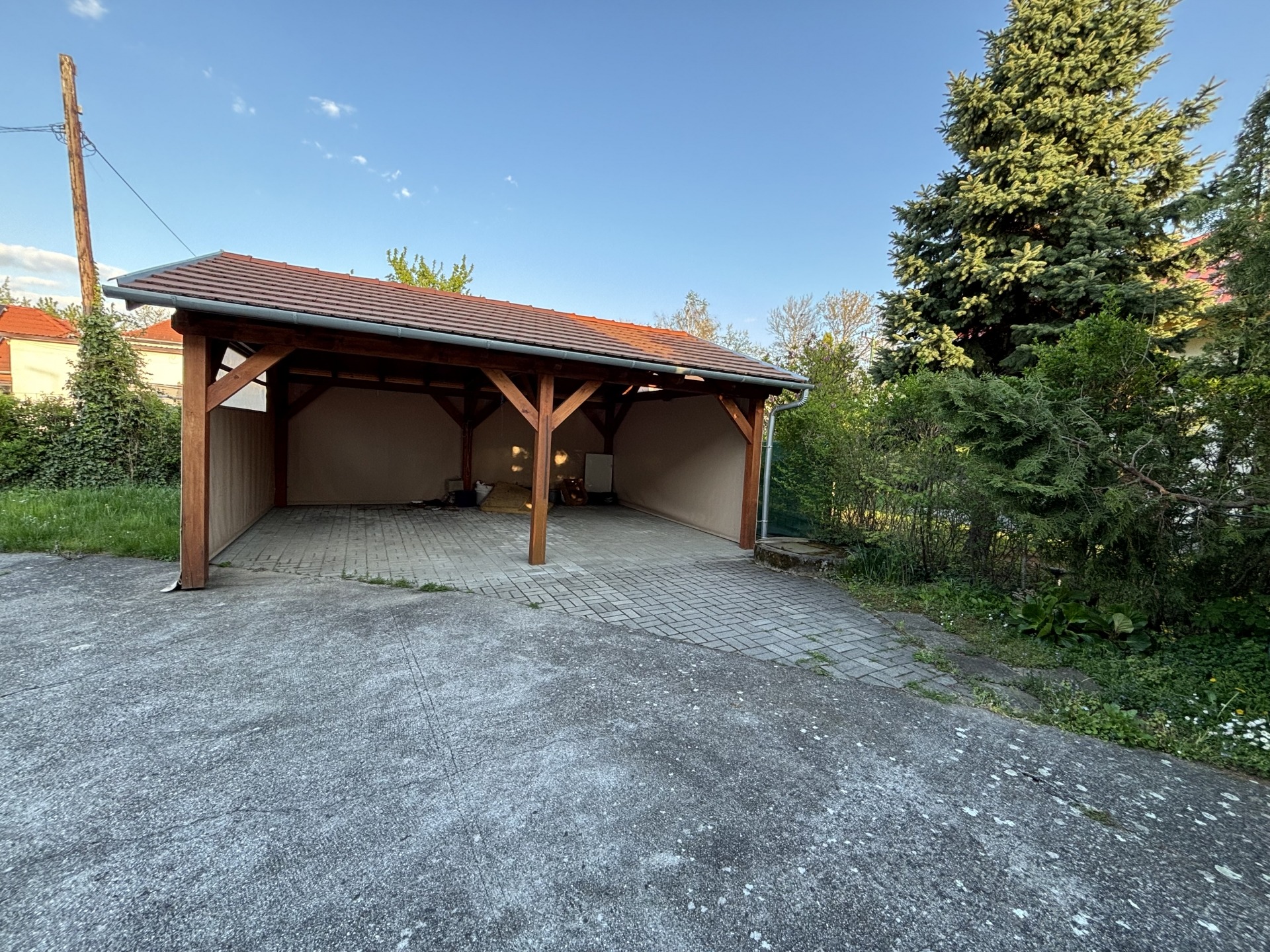 A bejárat előtt egy szép, kertkapcsolatos terasz biztosítja a helyet a reggeli kávézásokhoz és esti pihenéshez. A parkosított udvar zöldjéről hidroforos fúrt kút gondoskodik. Az ingatlanhoz egy tágas garázs, valamint az udvaron egy kétállásos autóbeálló is tartozik.