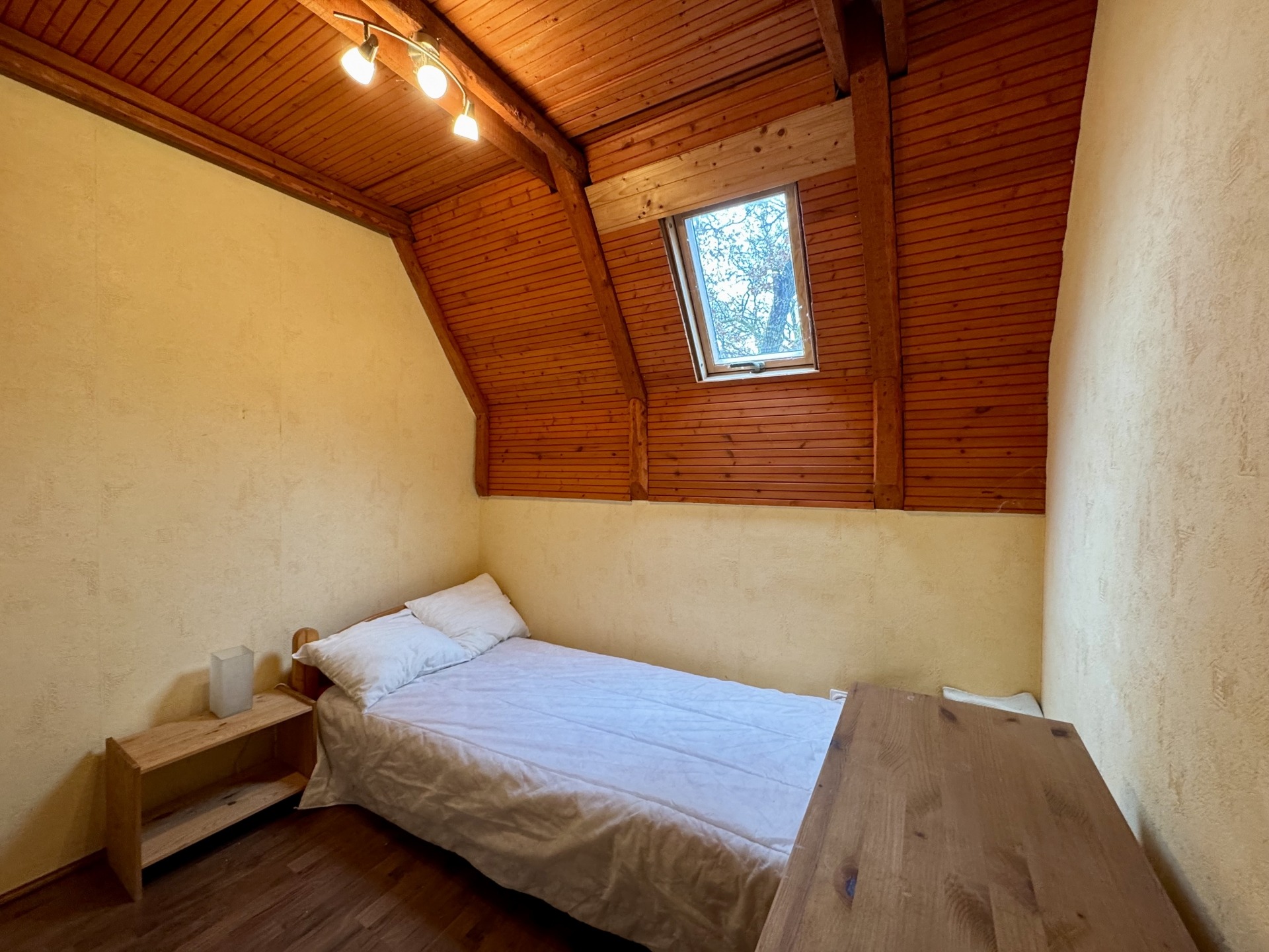 - Felső szint (padlástér): egy légterű hálórész, erkély
