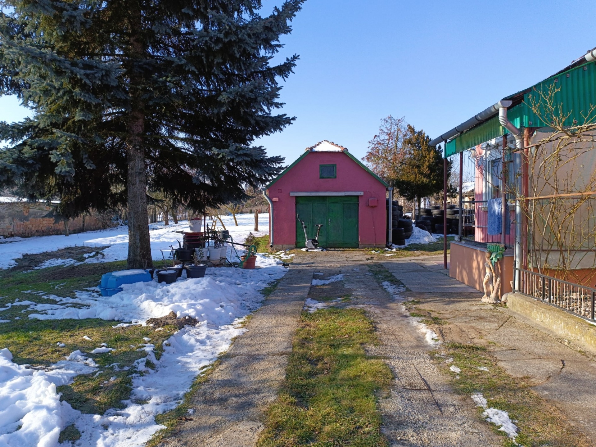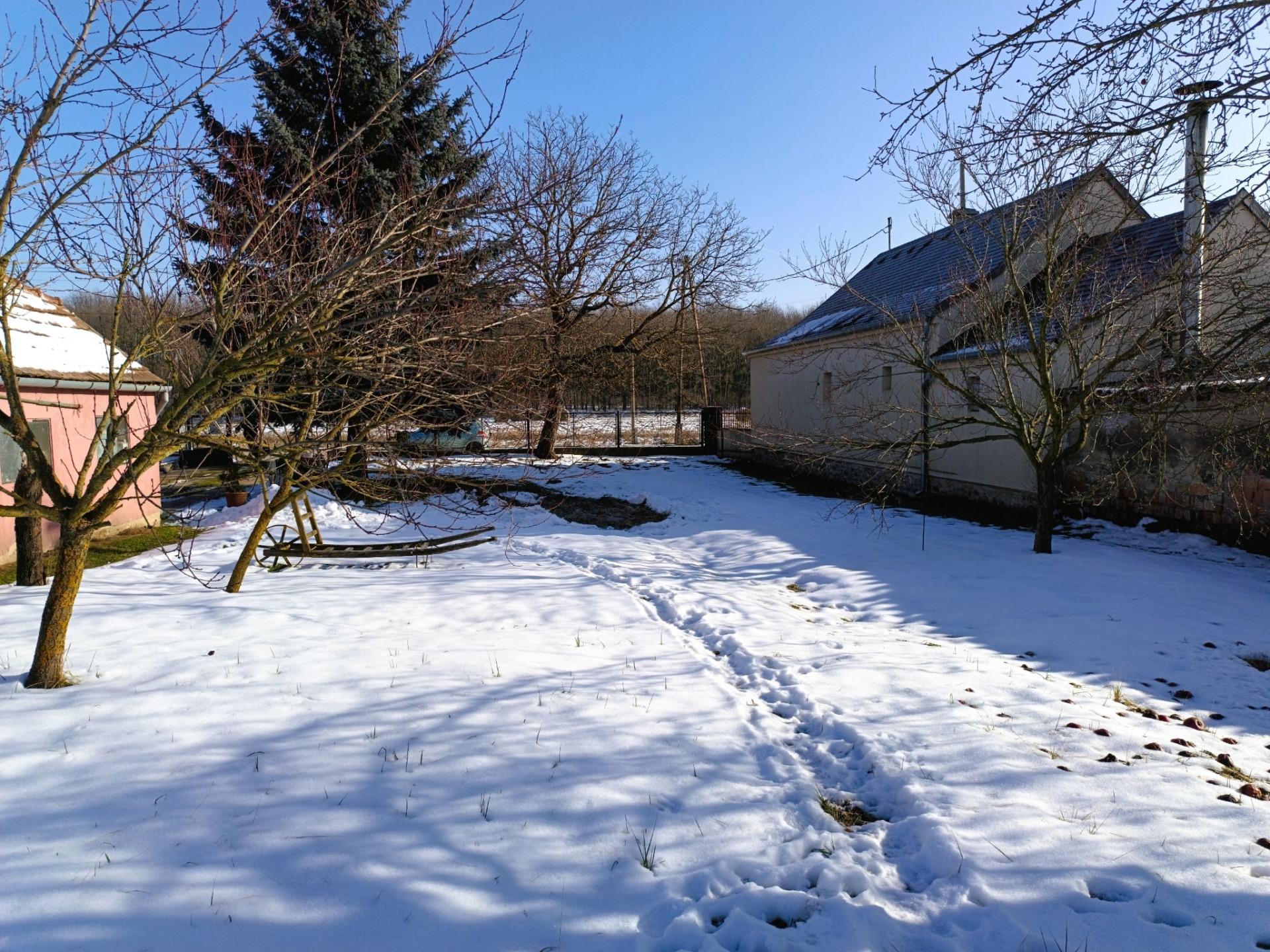 - Az udvar tágas, jól hasznosítható, több gyümölcsfával, gazdálkodásra is alkalmas.