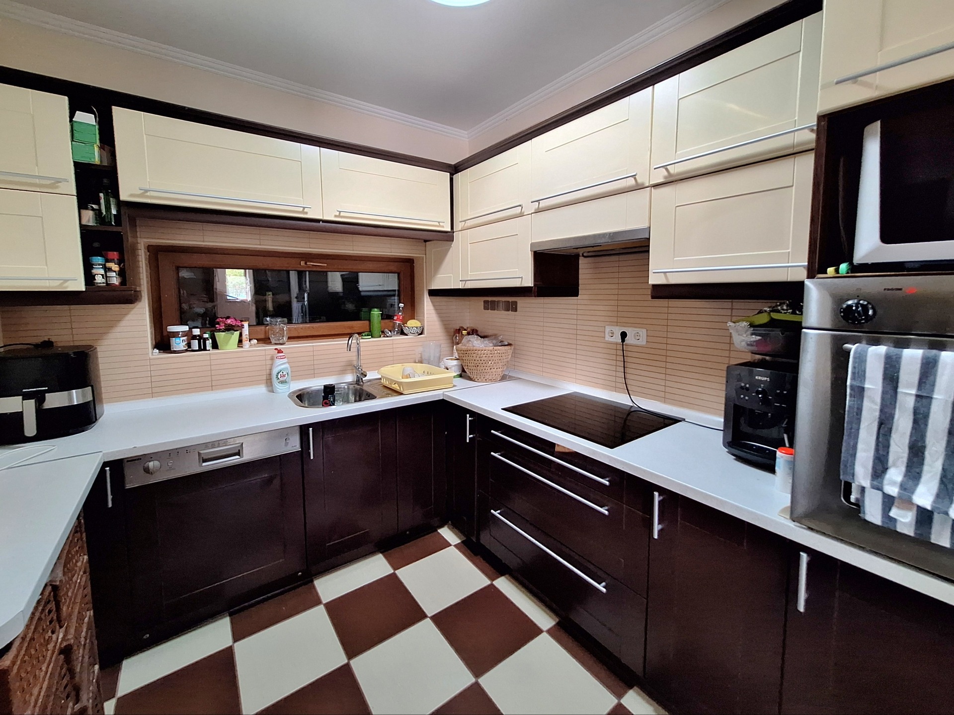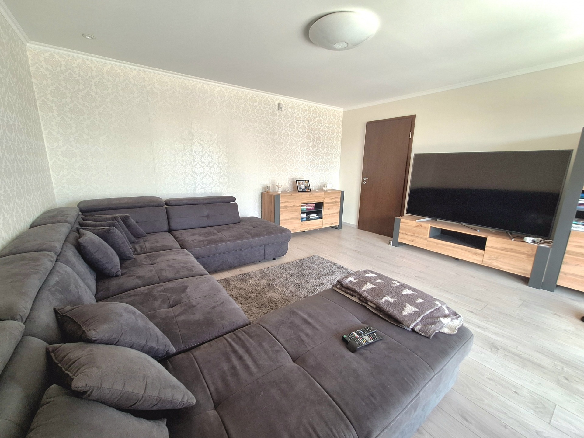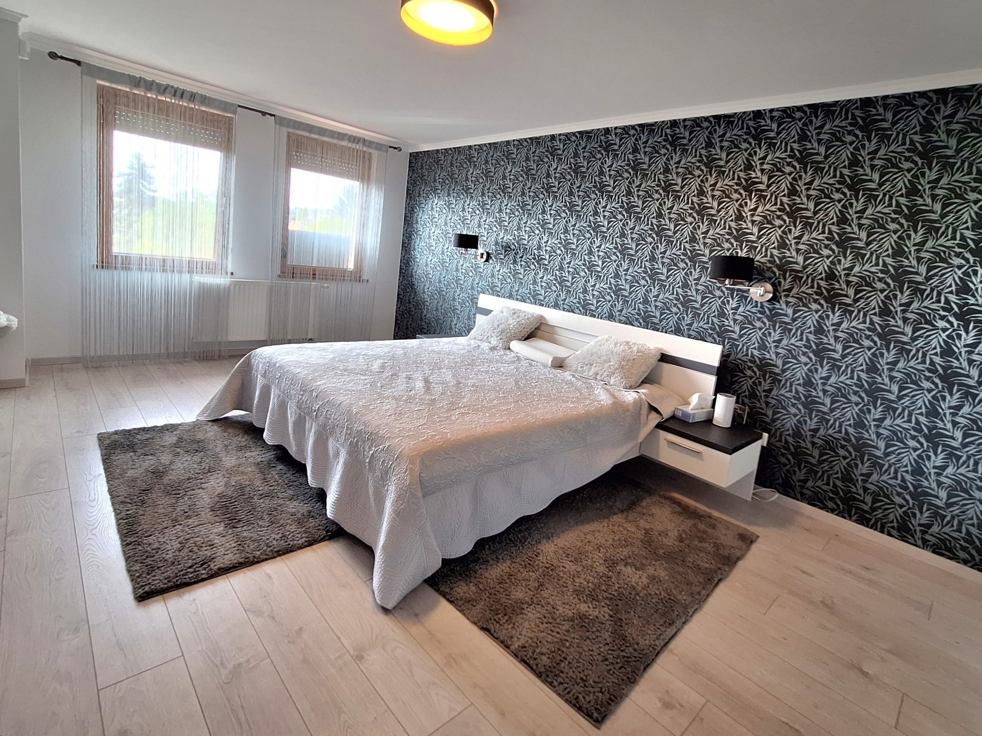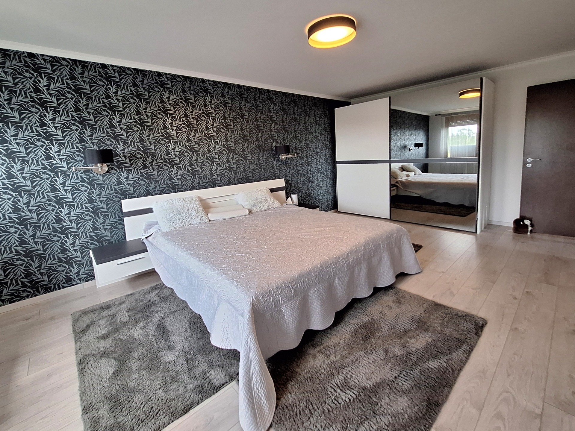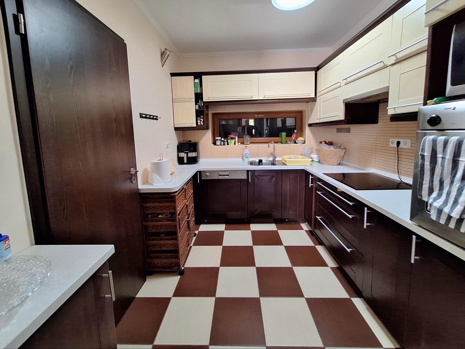 Flooring: ceramic tiles, strip parquet in bedrooms.