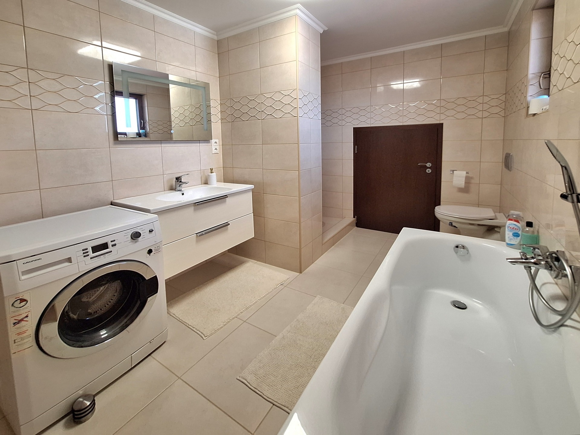 - bathroom with shower and bathtub + WC