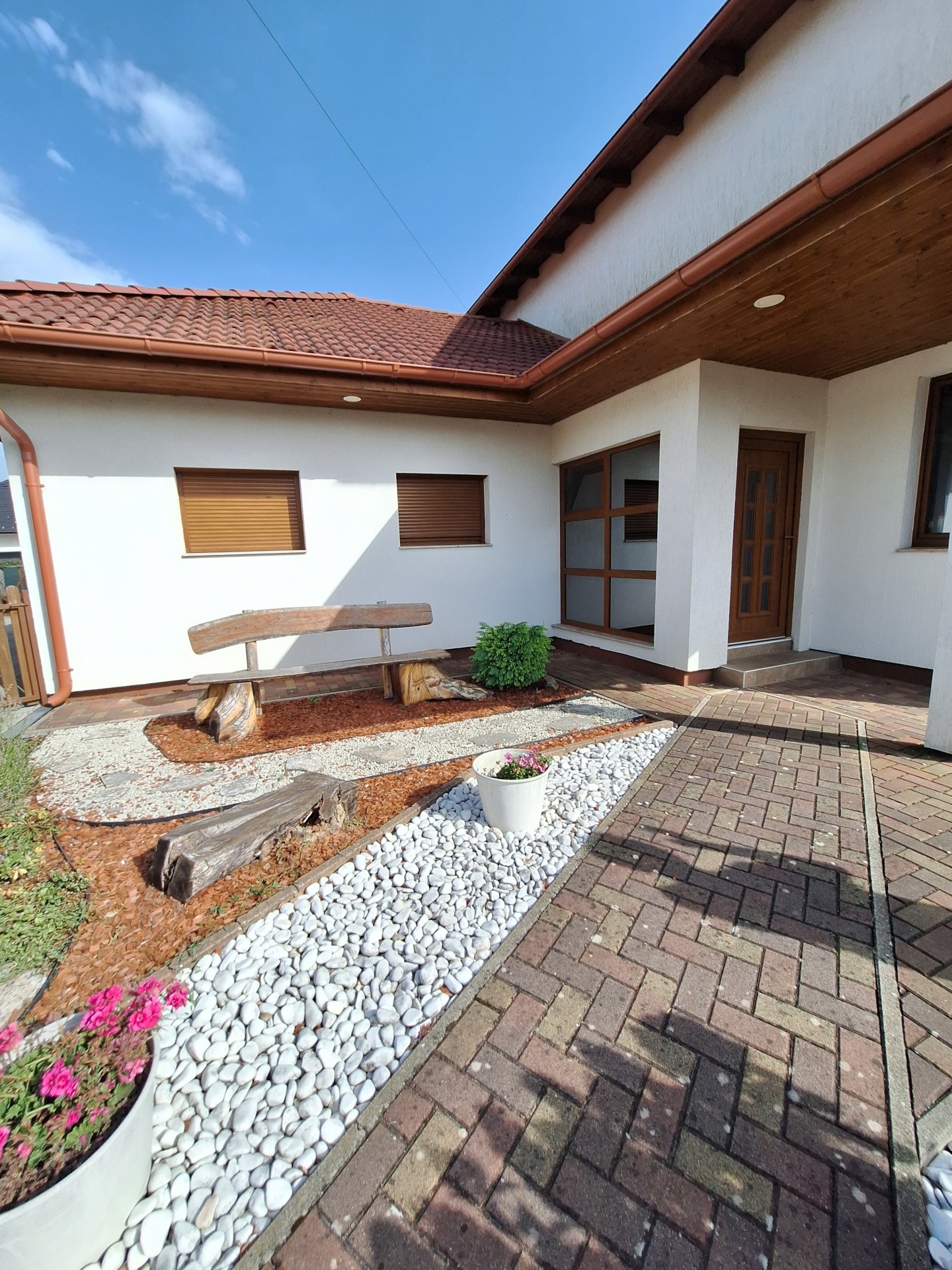 The lower floor of the house was built from Ytong blocks in 2011 with tiled roof. The upper floor was created in 2020 using lightweight construction technology, its roof covered with folded sheet metal. Insulation: 8 cm polystyrene on the lower floor, 15 cm on the upper floor.