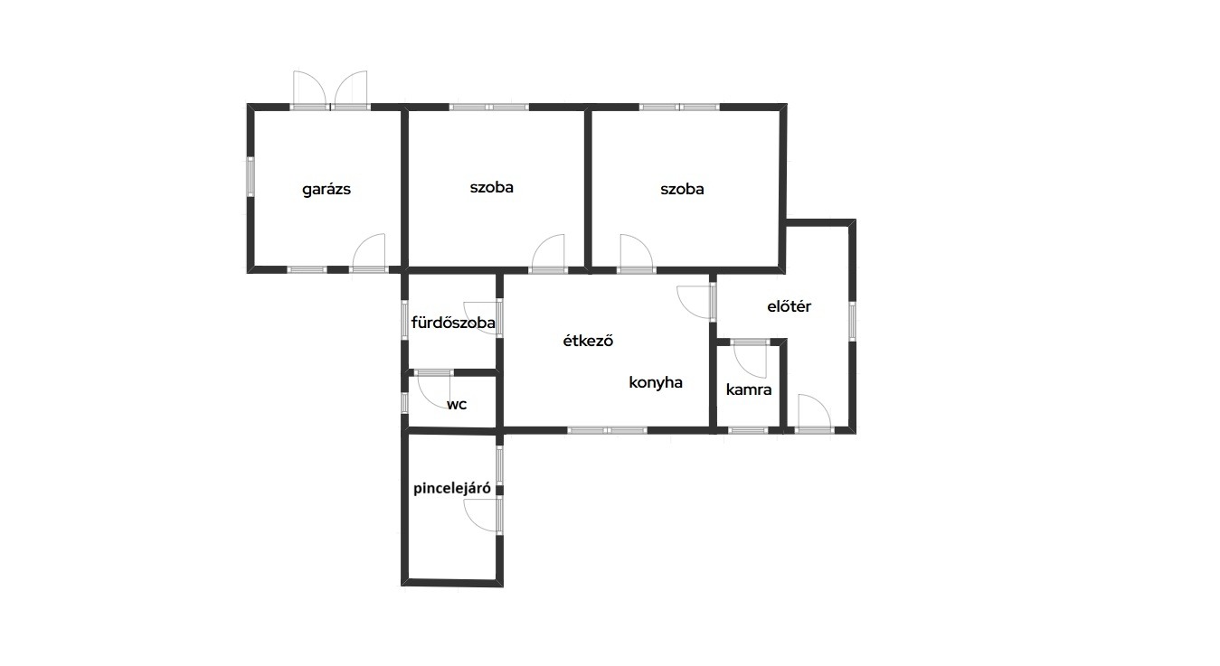 - Funkcionális elosztása: 2 szoba, konyha–étkező, fürdőszoba, külön WC, előtér, kamra