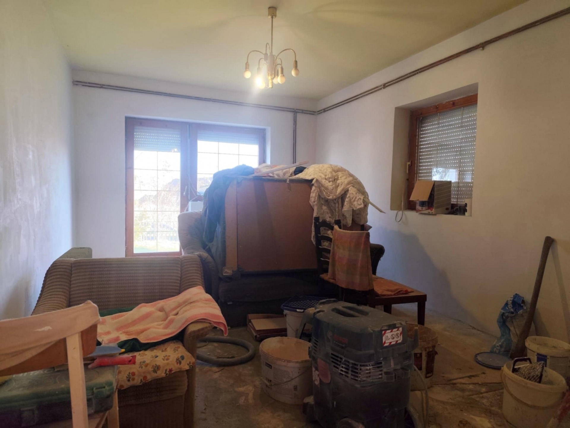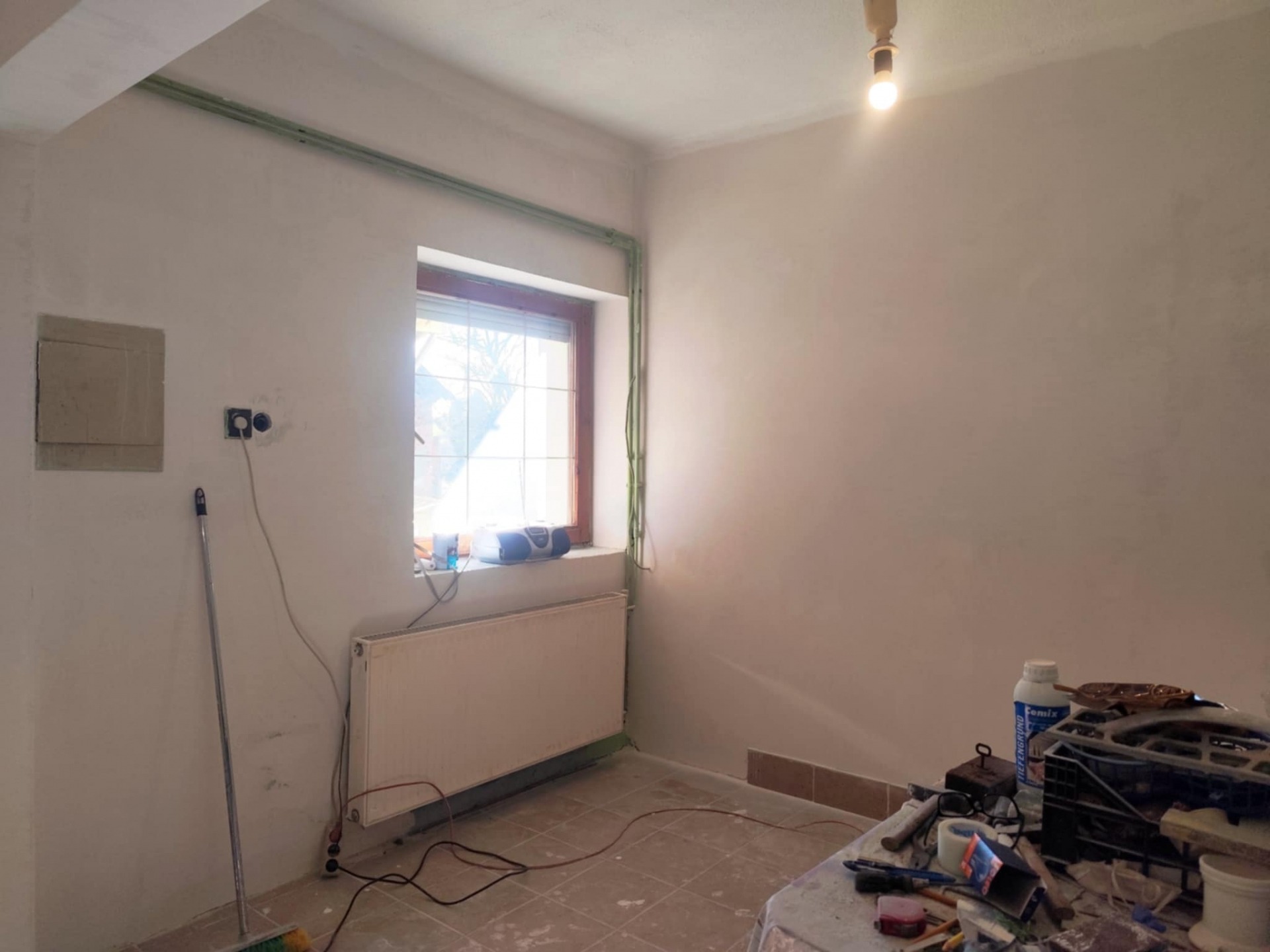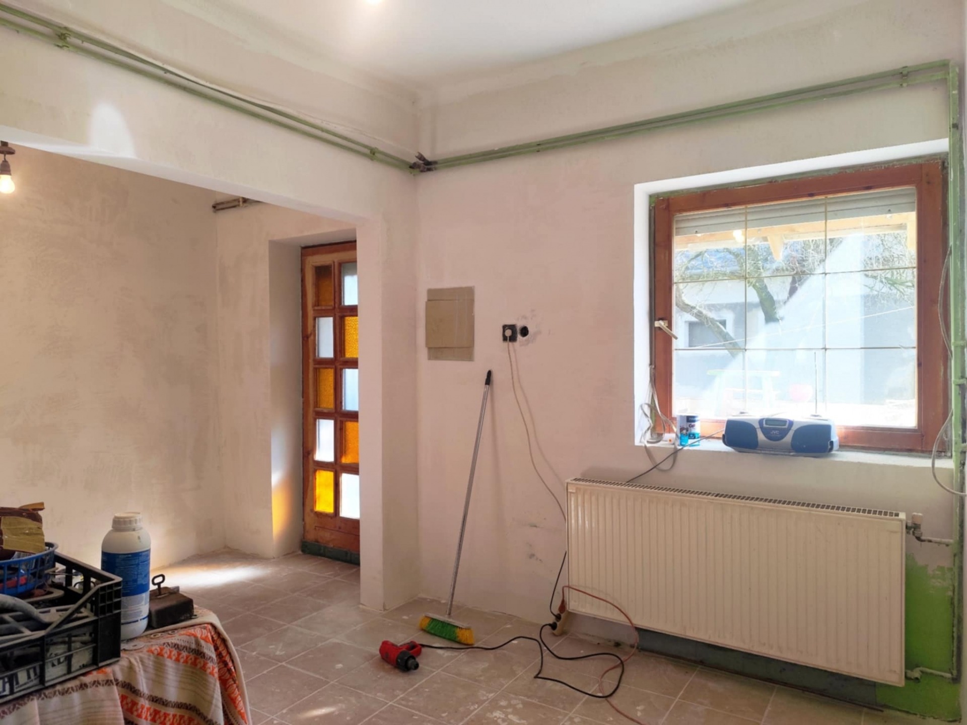 - a helyiségekben részben kerámia burkolatot, részben síkbetont találunk, előkészítve akár parkettázásra.
