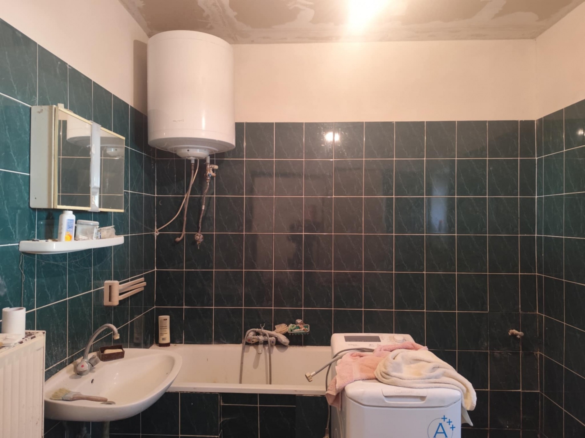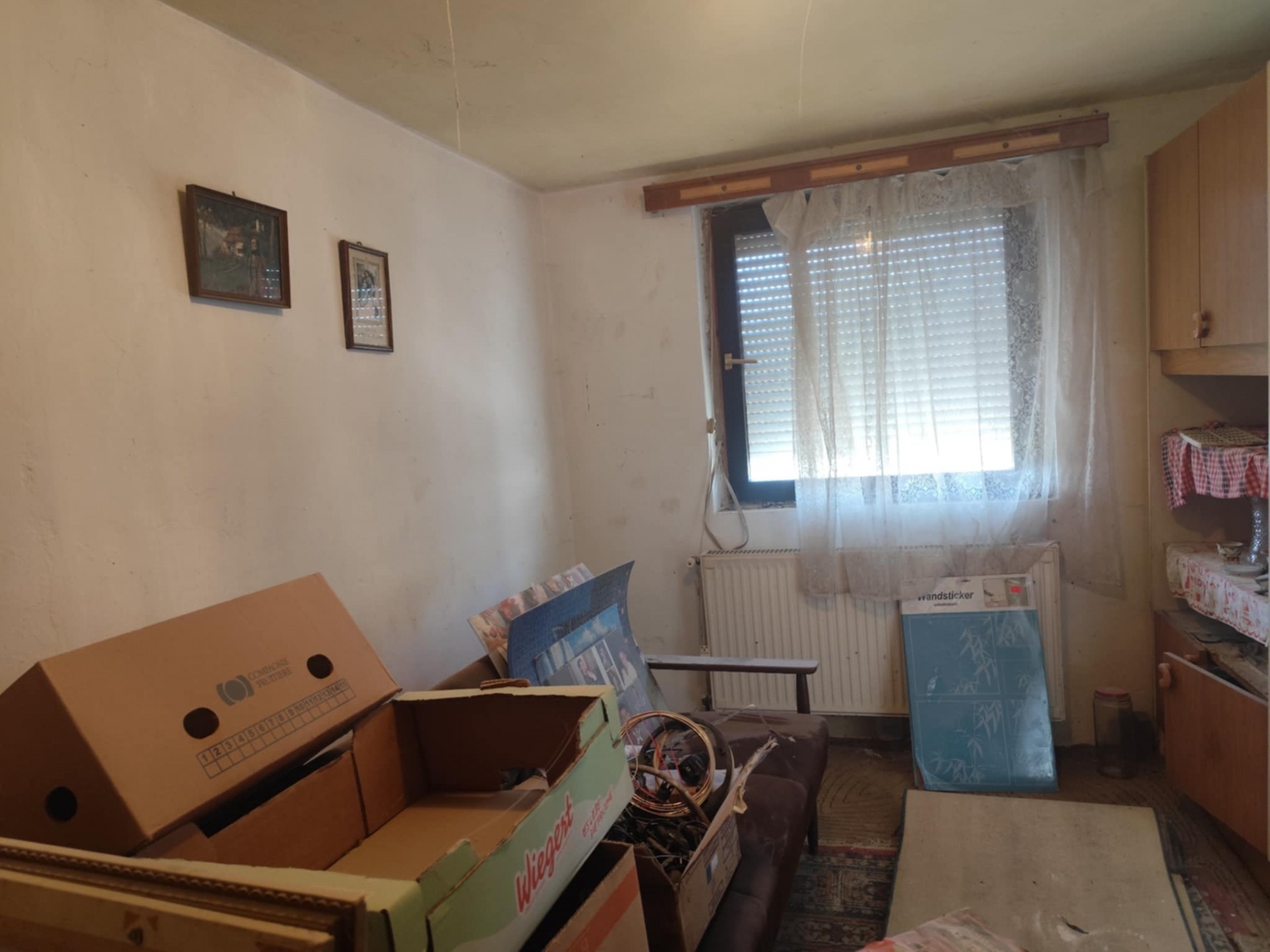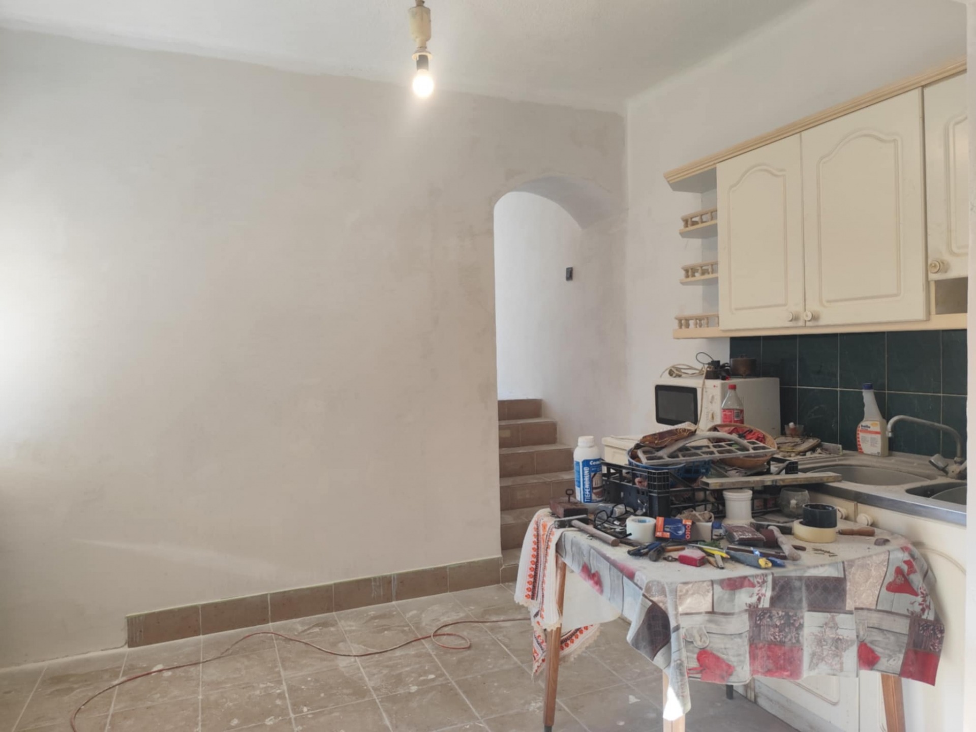- a helyiségekben részben kerámia burkolatot, részben síkbetont találunk, előkészítve akár parkettázásra.
