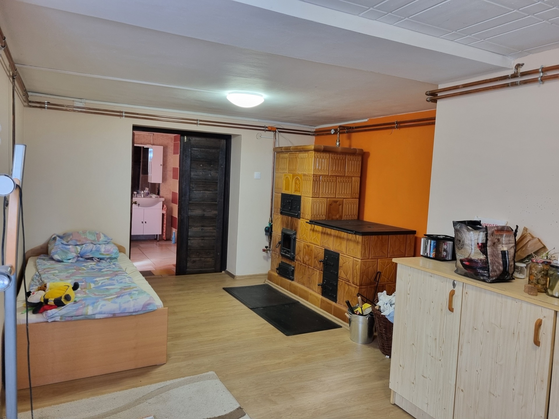 Fűtés: vízteres cserépkályha, radiátoros hőleadó rendszerrel (fagyállóval feltöltve)