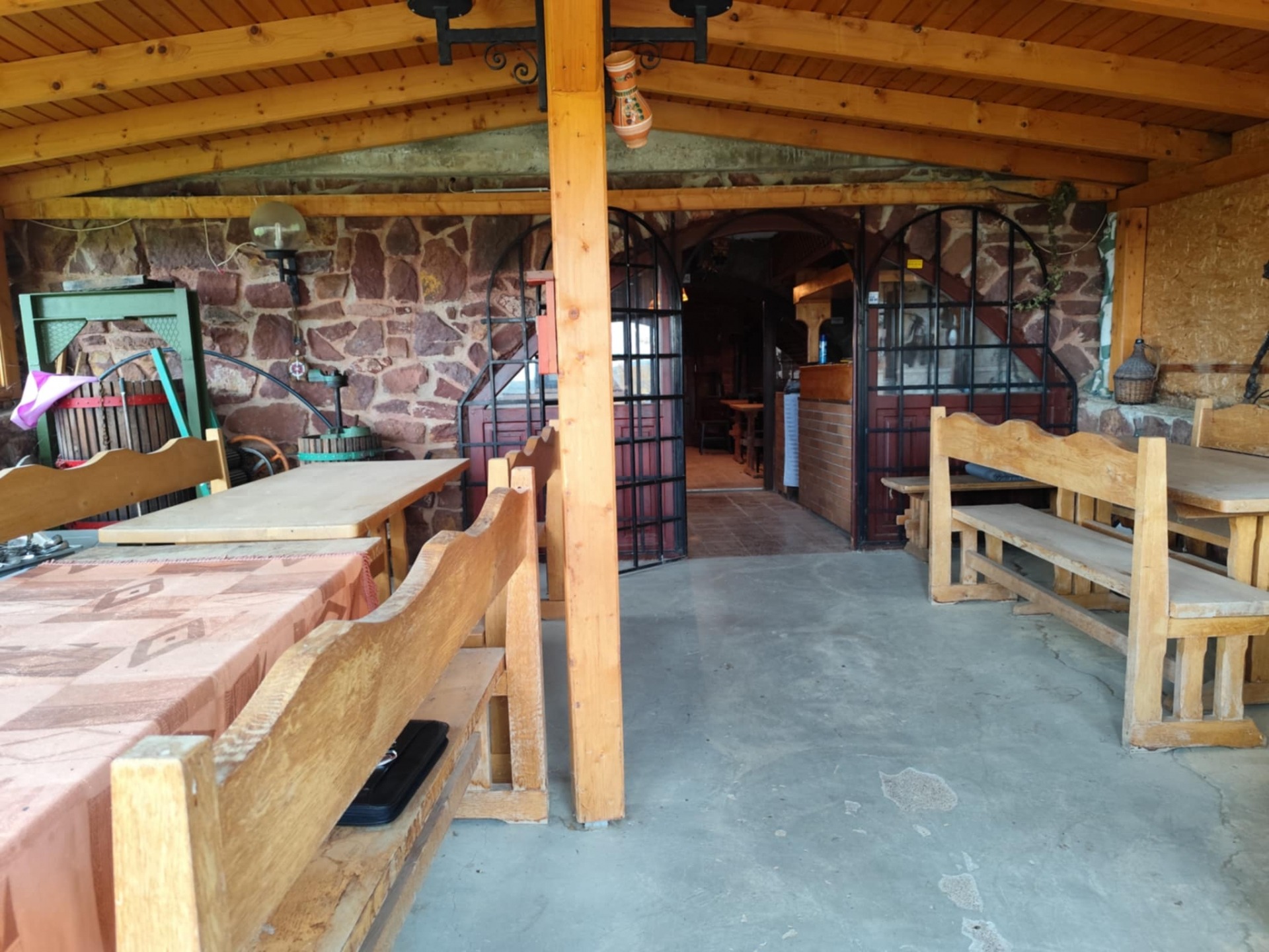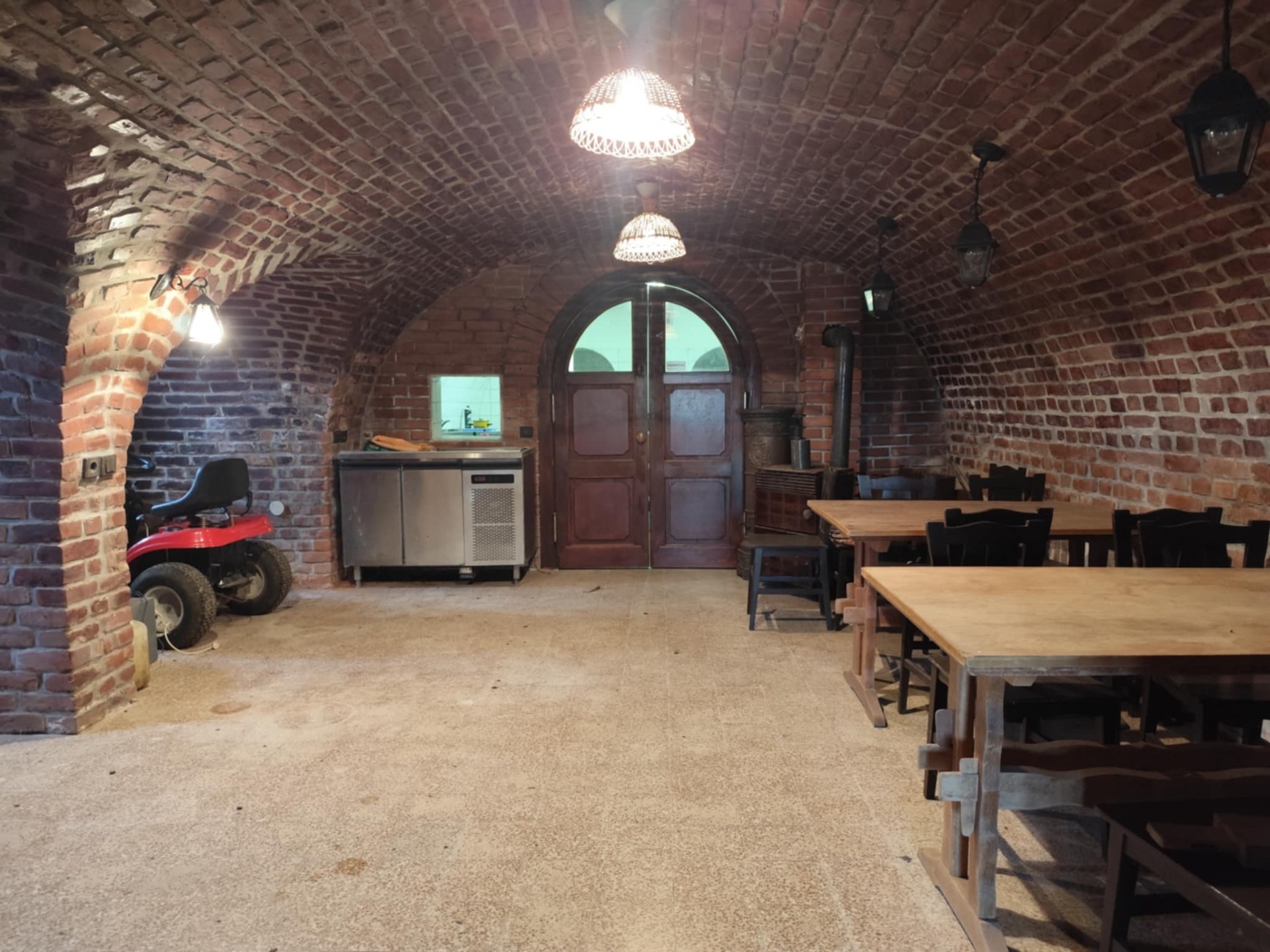 Az alsó pinceszintre egy, az épülethez hozzáépített, zárt, faszerkezetű, 30 nm-es teraszon keresztül jutunk. Beljebb haladva boltíves, hatalmas, téglaborítású pincébe érünk. Mindkét rész vendégtérként szolgált. Ezentúl találunk itt vendég WC-ket, konyhát, előkészítőt, tárolókat, különböző helyiségeket, amik a vendéglátást szolgálták. Mindez akár lakótérré is alakítható! Ezen részek összterülete 80 nm, így akár 80-100 vendég is helyet foglalhatott.