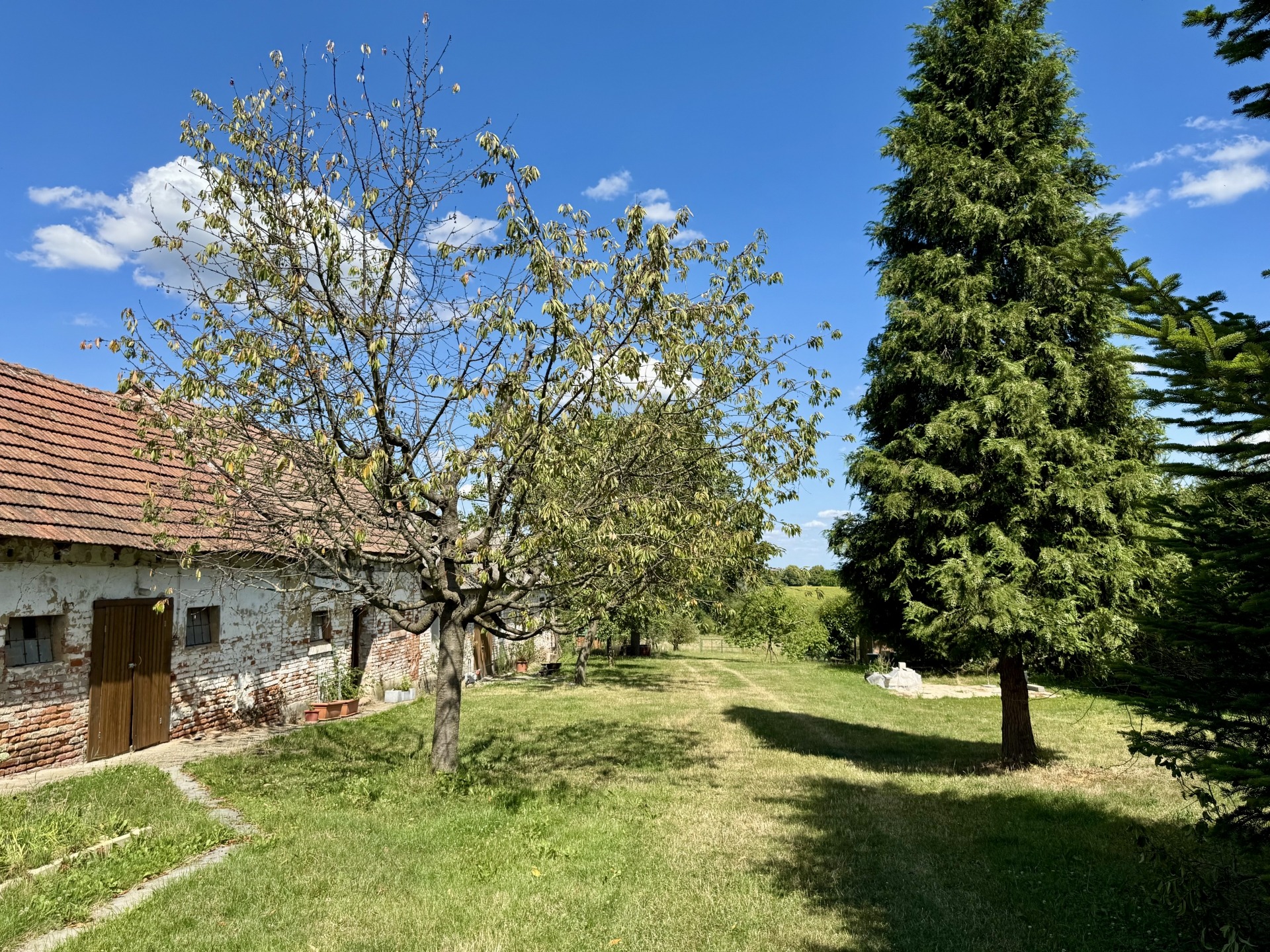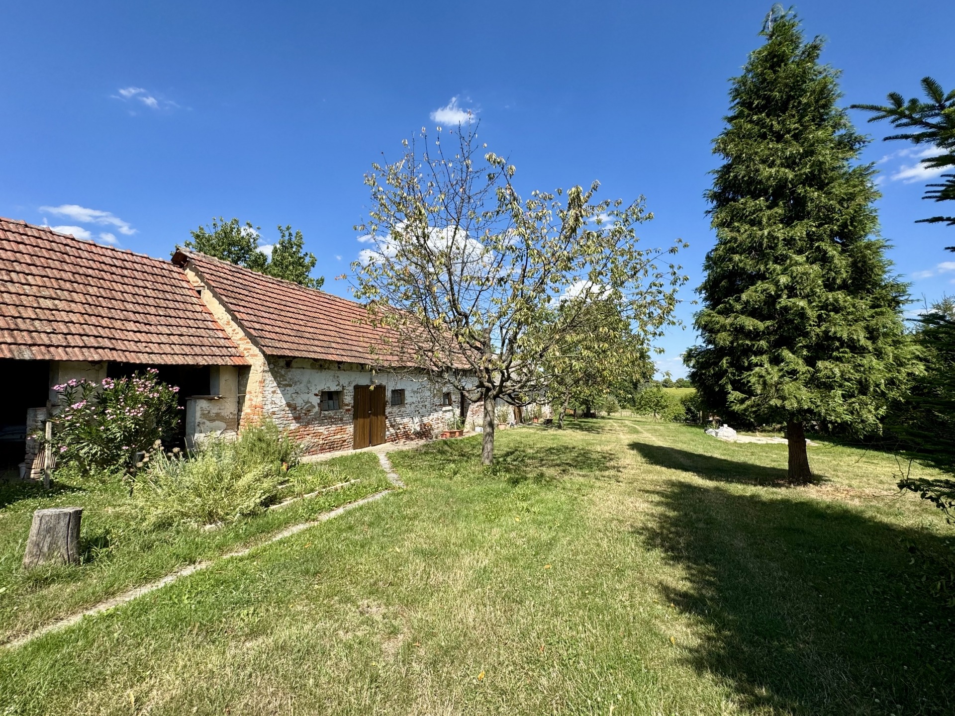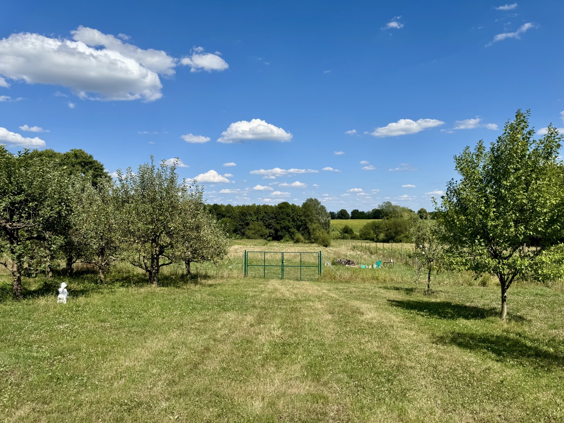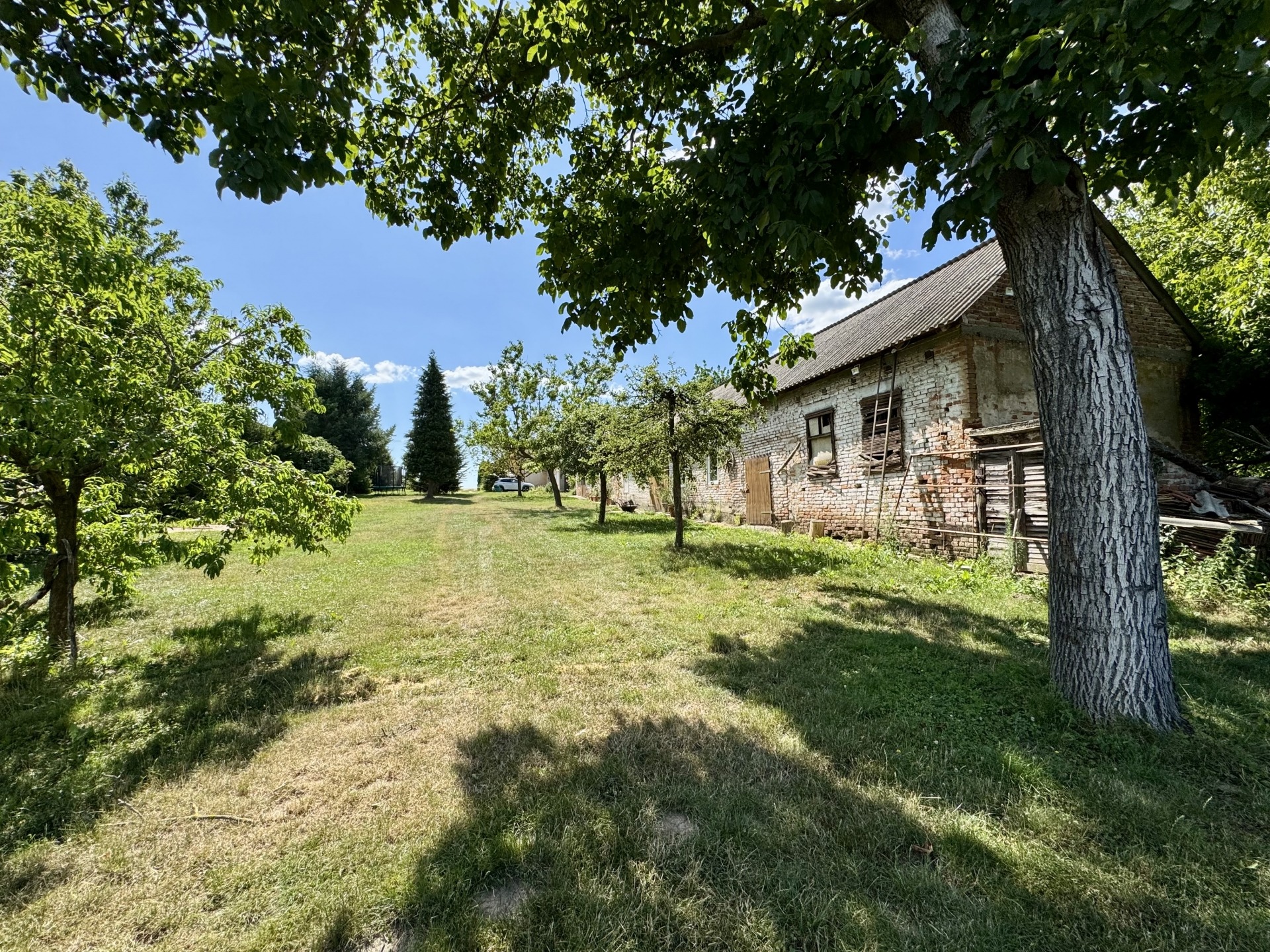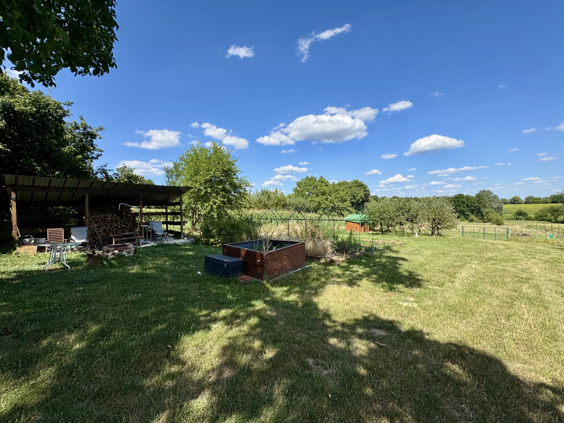 Termő gyümölcsfák, konyhakert, és dísznövények gazdagítják a birtokot.