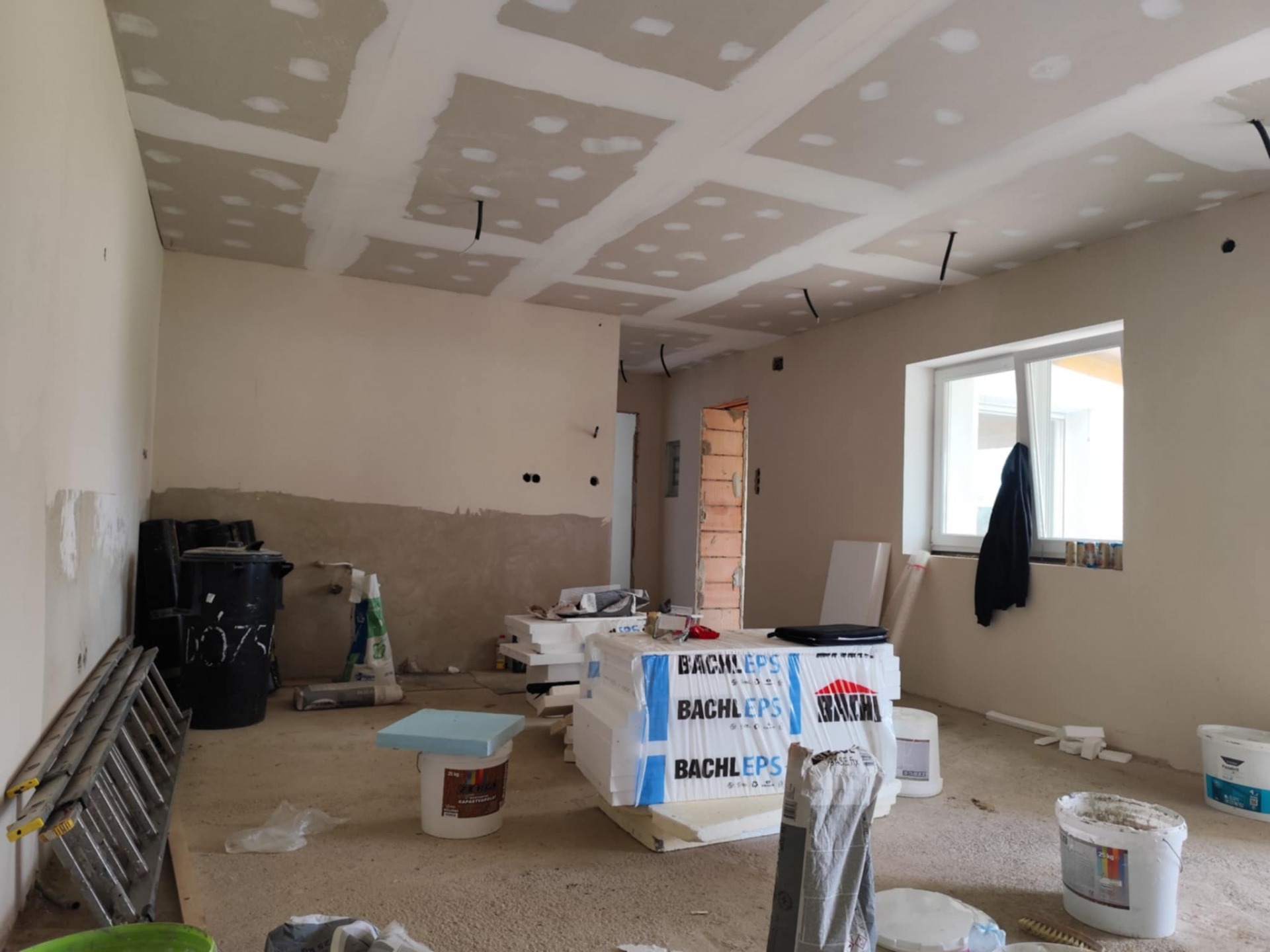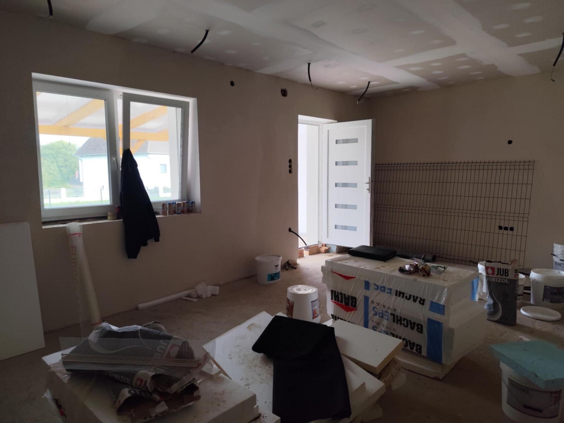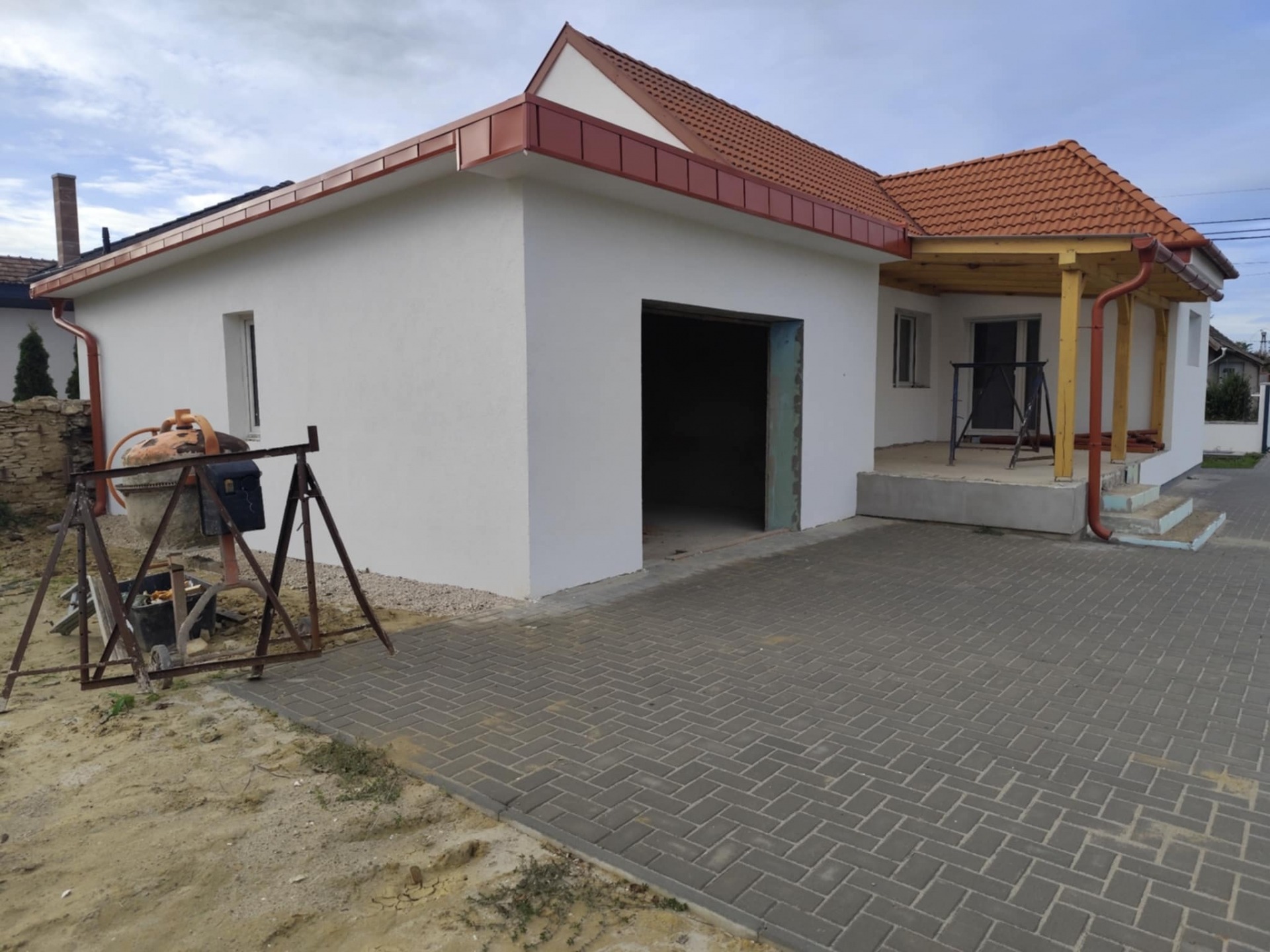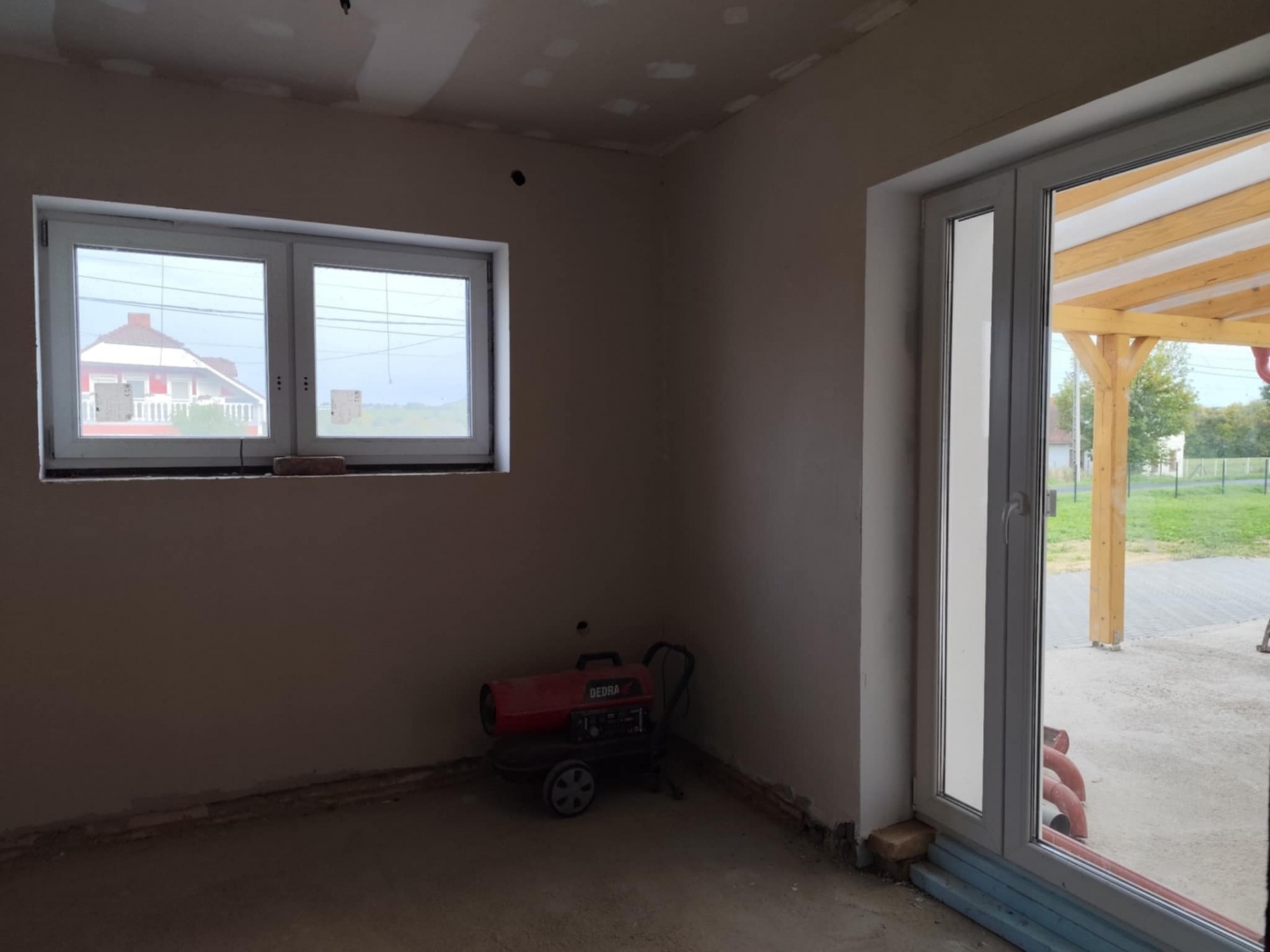 - Az épület magas készültségi szinttel kerül eladásra. Víz, villany, szennyvíz, fűtés vezetékelése megtörtént, csak szerelvényezni kell. A fűtést radiátoros hőleadókkal tervezték, gáz vagy vegyes tüzelésű kazán ( ezek elhelyezése a garázsban lehetséges) beépítési lehetőséggel. Padlózat burkolásra kész állapotban. Három beltéri ajtó beépítésével kell még számolnunk.