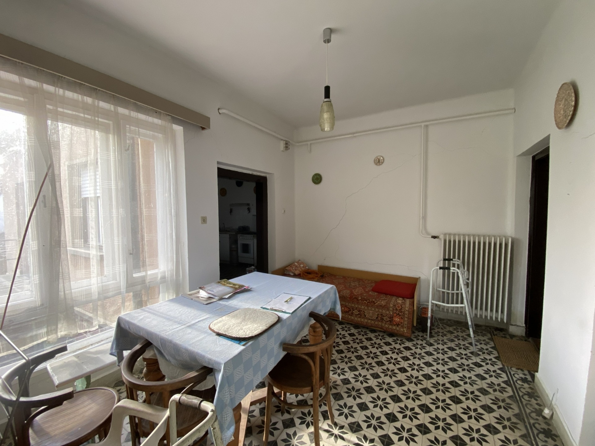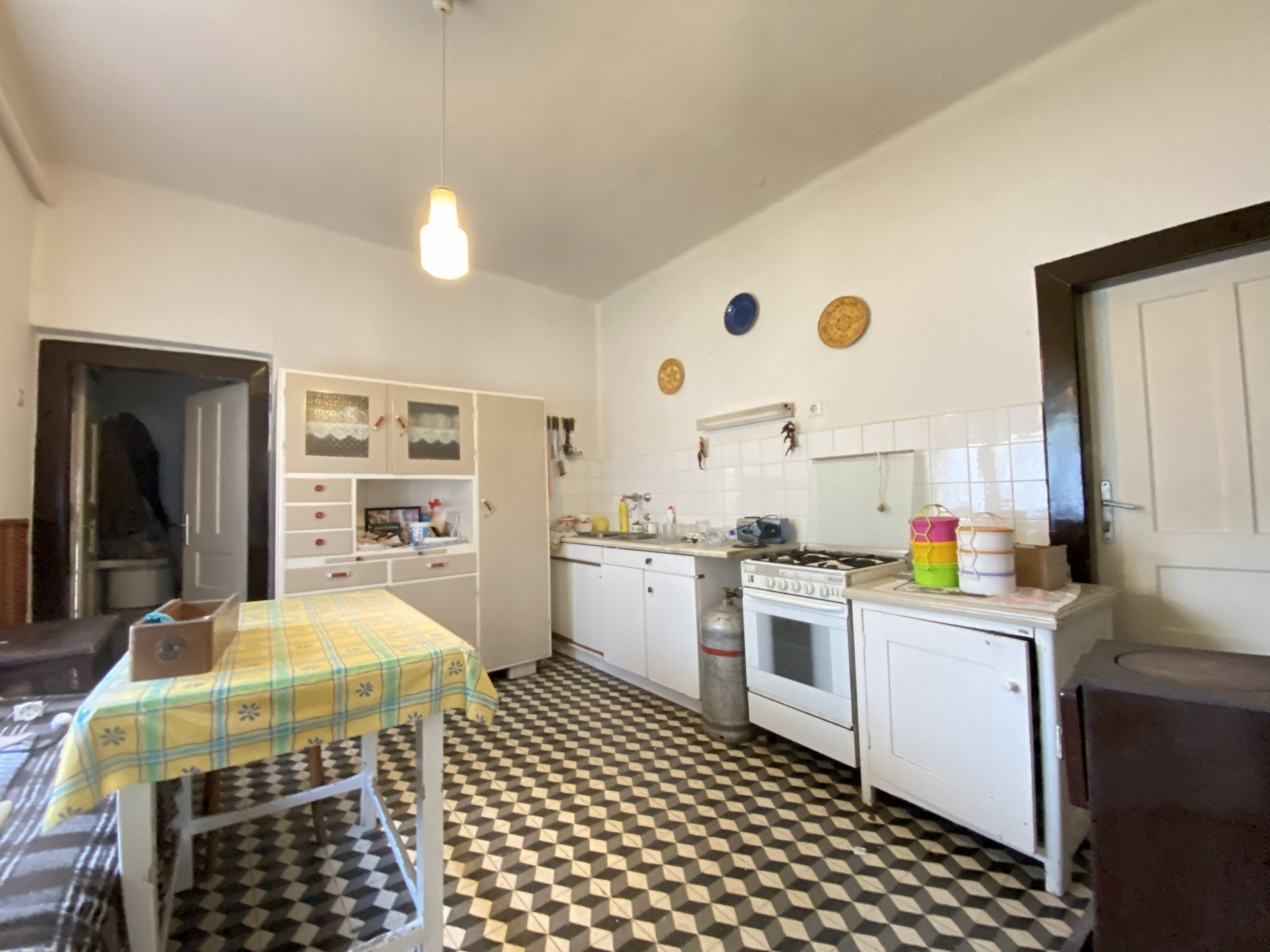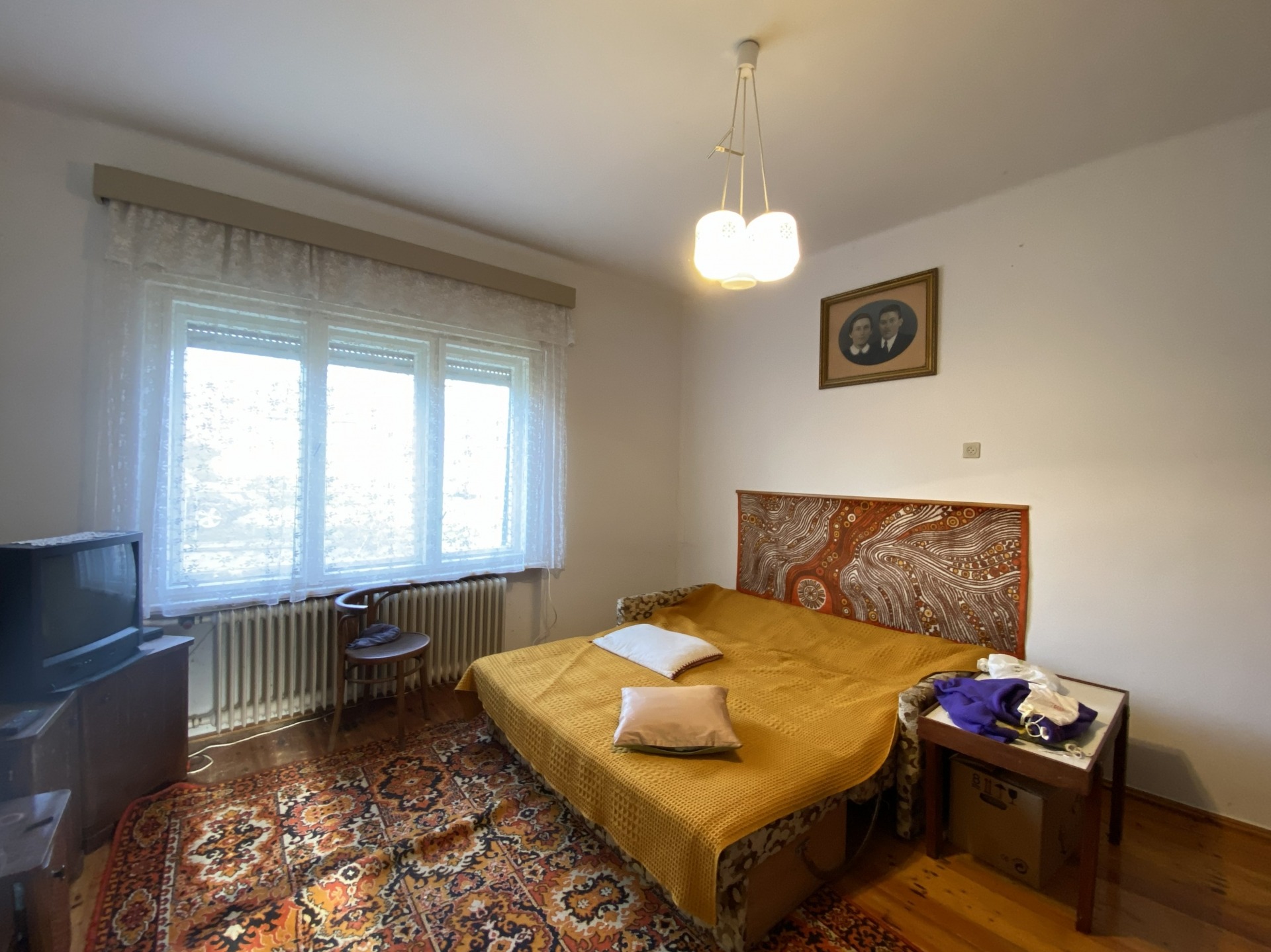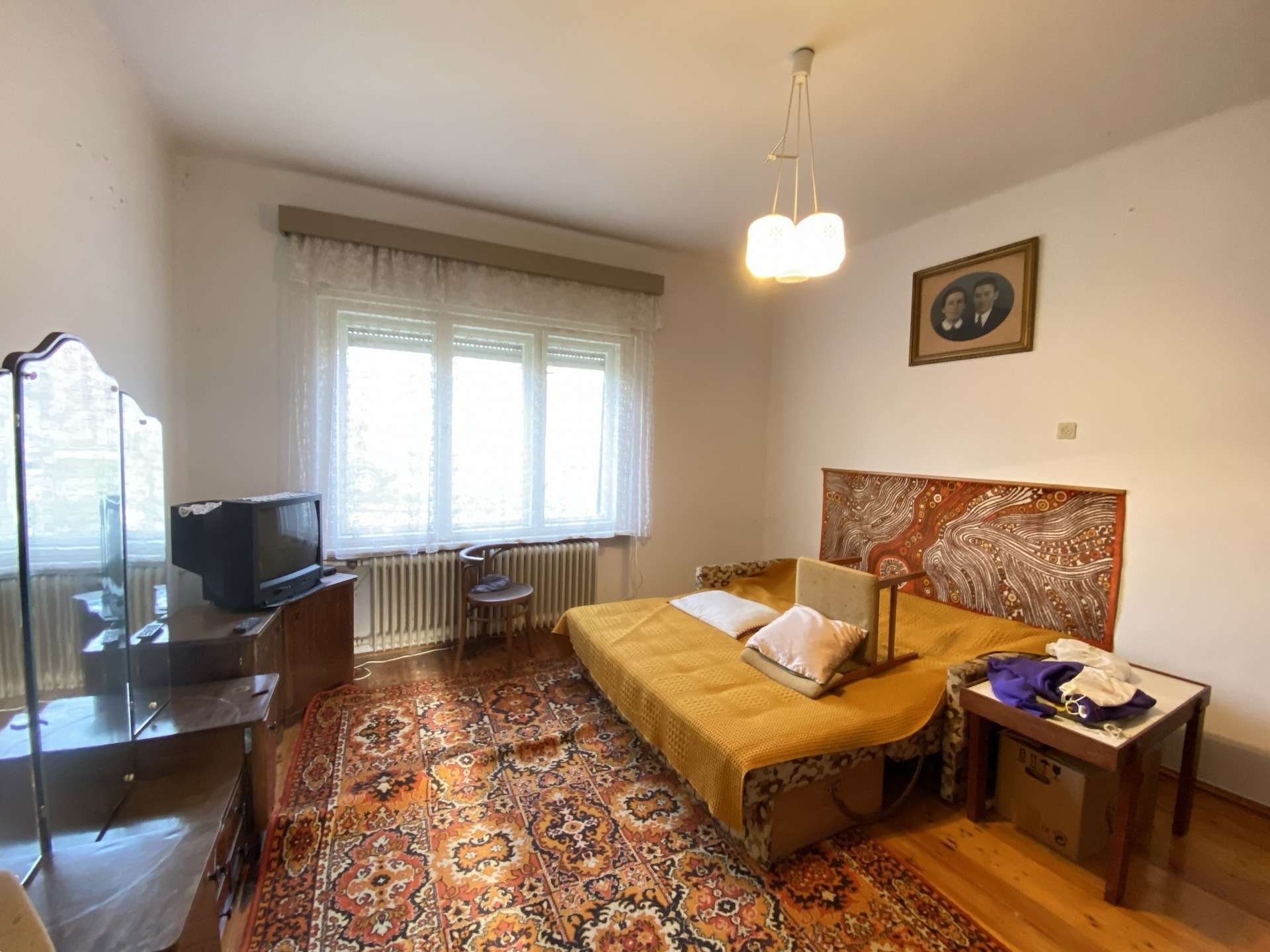 A tágas, világos előtérből két lakószoba, valamint egy szintén nagy és világos konyha nyílik. A konyhából kamra, egy kisebb szoba, illetve egy további helyiség érhető el, ahol a fürdőszoba került kialakításra. Felújítás során a helyiségek funkciója újragondolható és átalakítható.