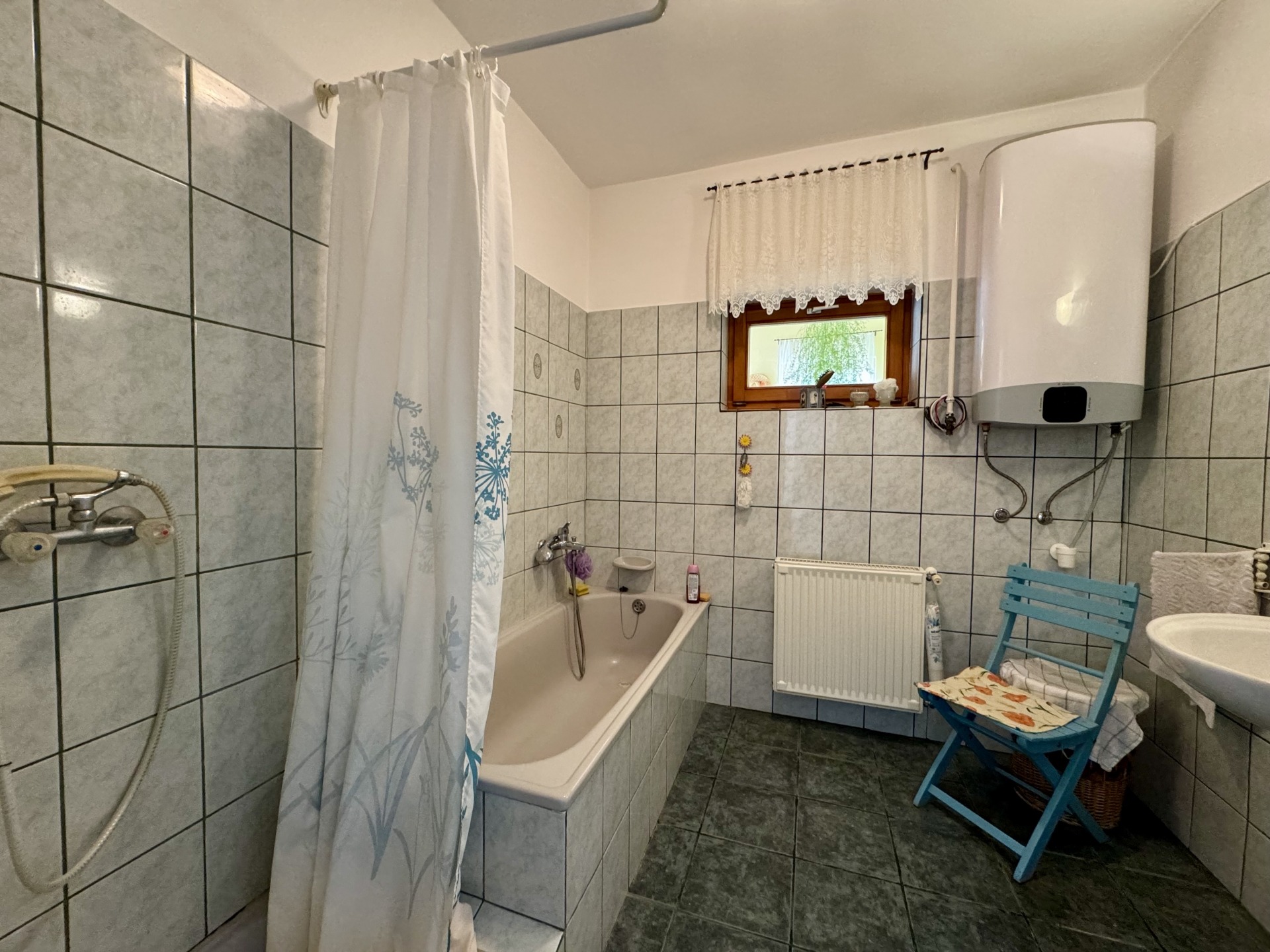 Családi ház fűtéséről gázkazán valamint patkós cserépkályha gondoskodik radiátorokra csatlakozva.
