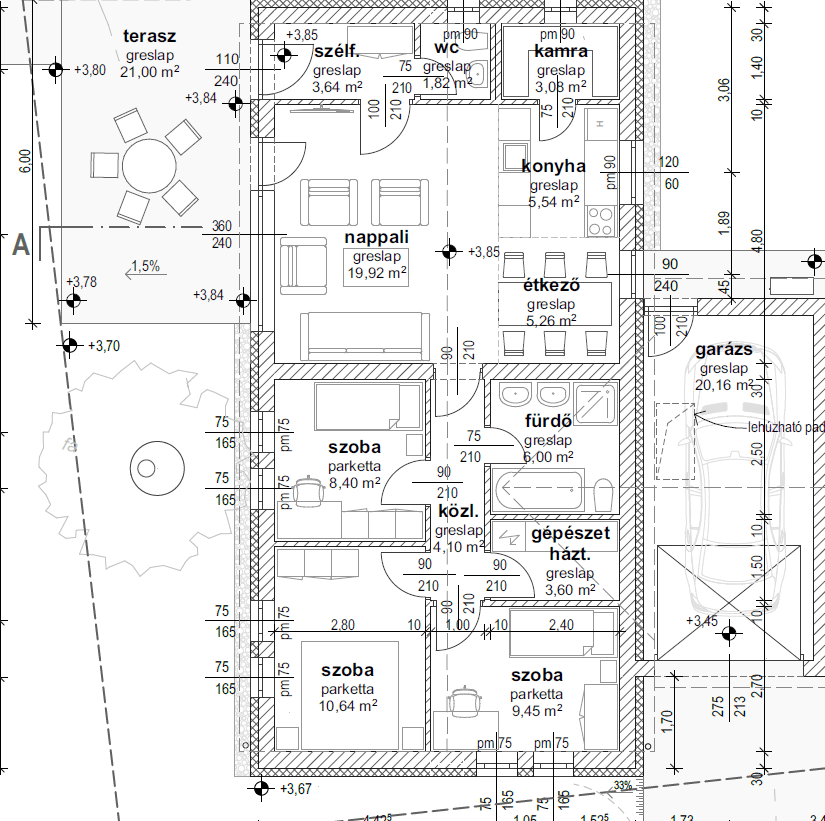 81,45 nm hasznos lakótér, plusz 21 nm terasz, és 20,16 nm garázs