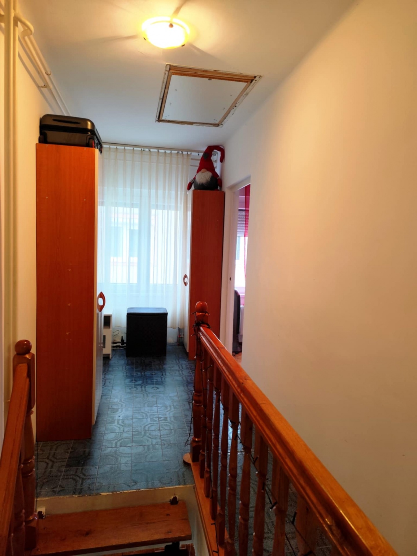 A két szint belül lépcsőn átjárható. Tervben volt a külön bejárat megvalósítása, a felső szint kívülről való megközelíthetősége. Ez továbbra is lehetséges alternatíva. A felső fél szobában a konyha kiépítéséhez előkészítésre kerültek a víz és szennyvíz vezetékek.