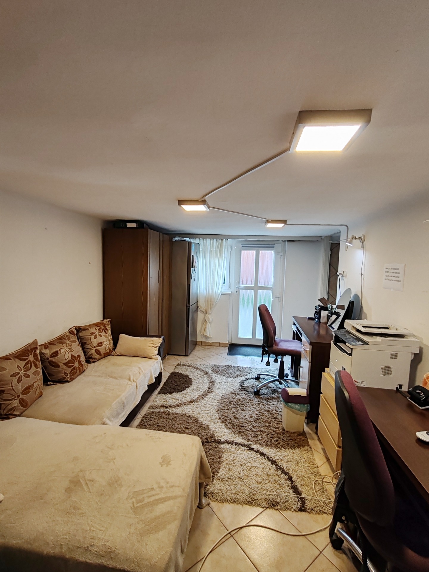 ALSÓ szintje egy szoba, tusoló/WC, valamint egy főzőfülke (25 nm). Ez a szint klímával fűthető. Mellette található a garázs (25 nm).