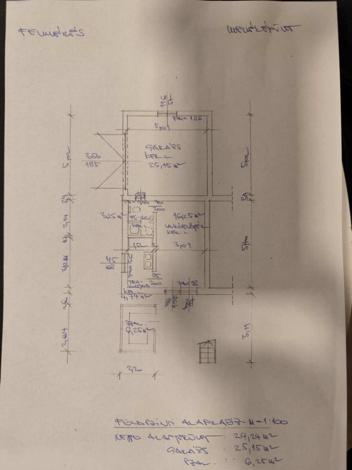 - tégla falazat, 5 cm-es külső szigeteléssel, tetőzetét sík pala borítja