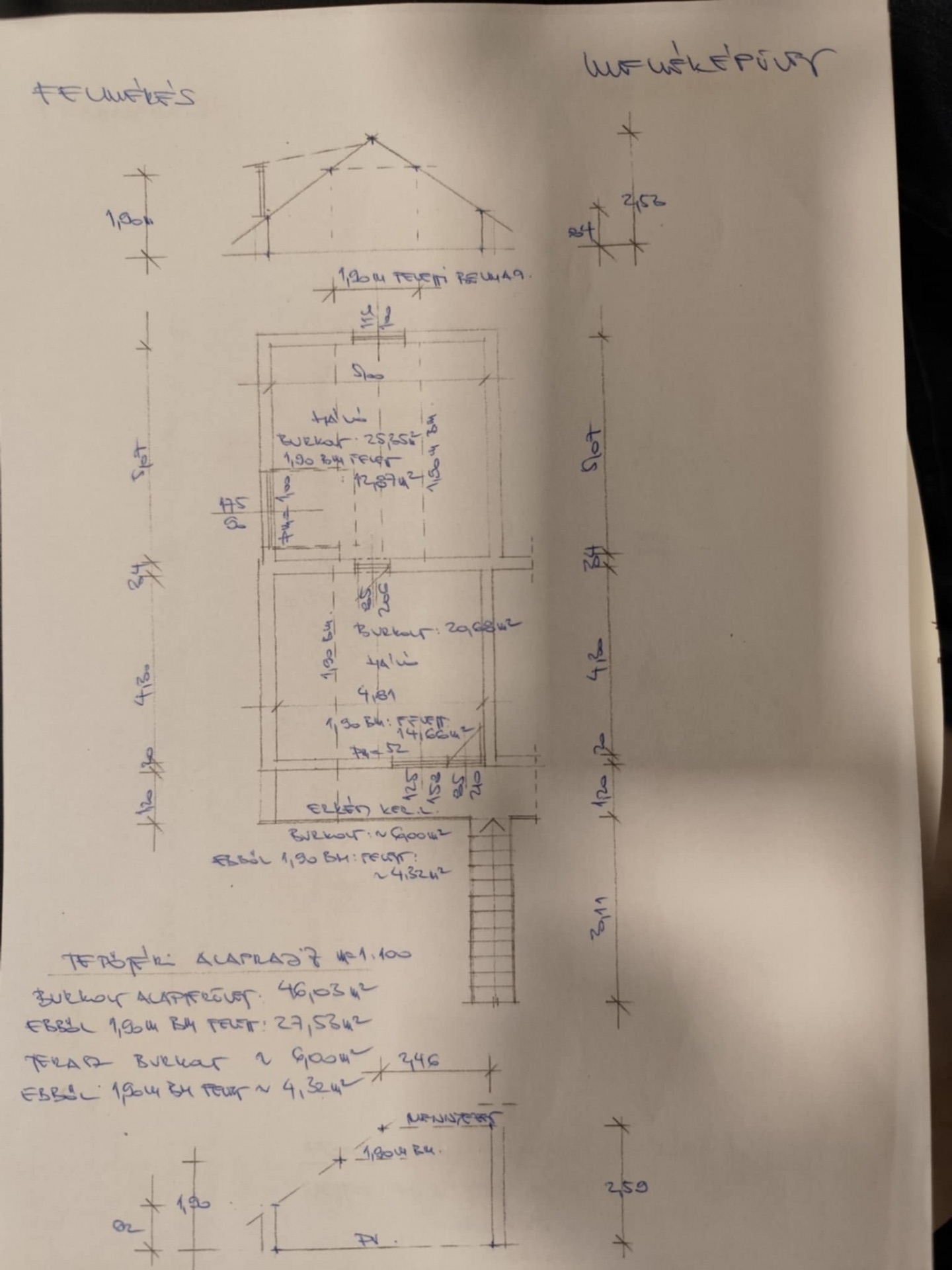FELSŐ szintje két szoba (46 nm, ebből hasznos 27,5 nm, valamint erkély 6 nm). A két szint külön bejárattal rendelkezik.