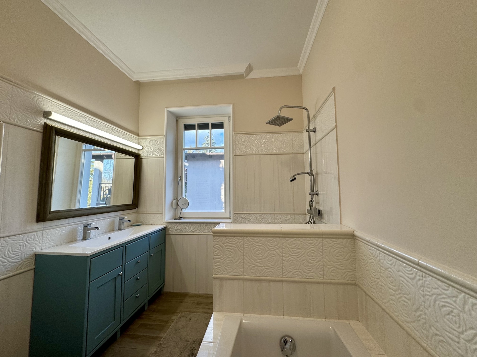Ezen a szinten 3 hálószoba, melyből az egyikben elhelyezésre került egy szabadon álló kád. Gardrób, külön mosdó.