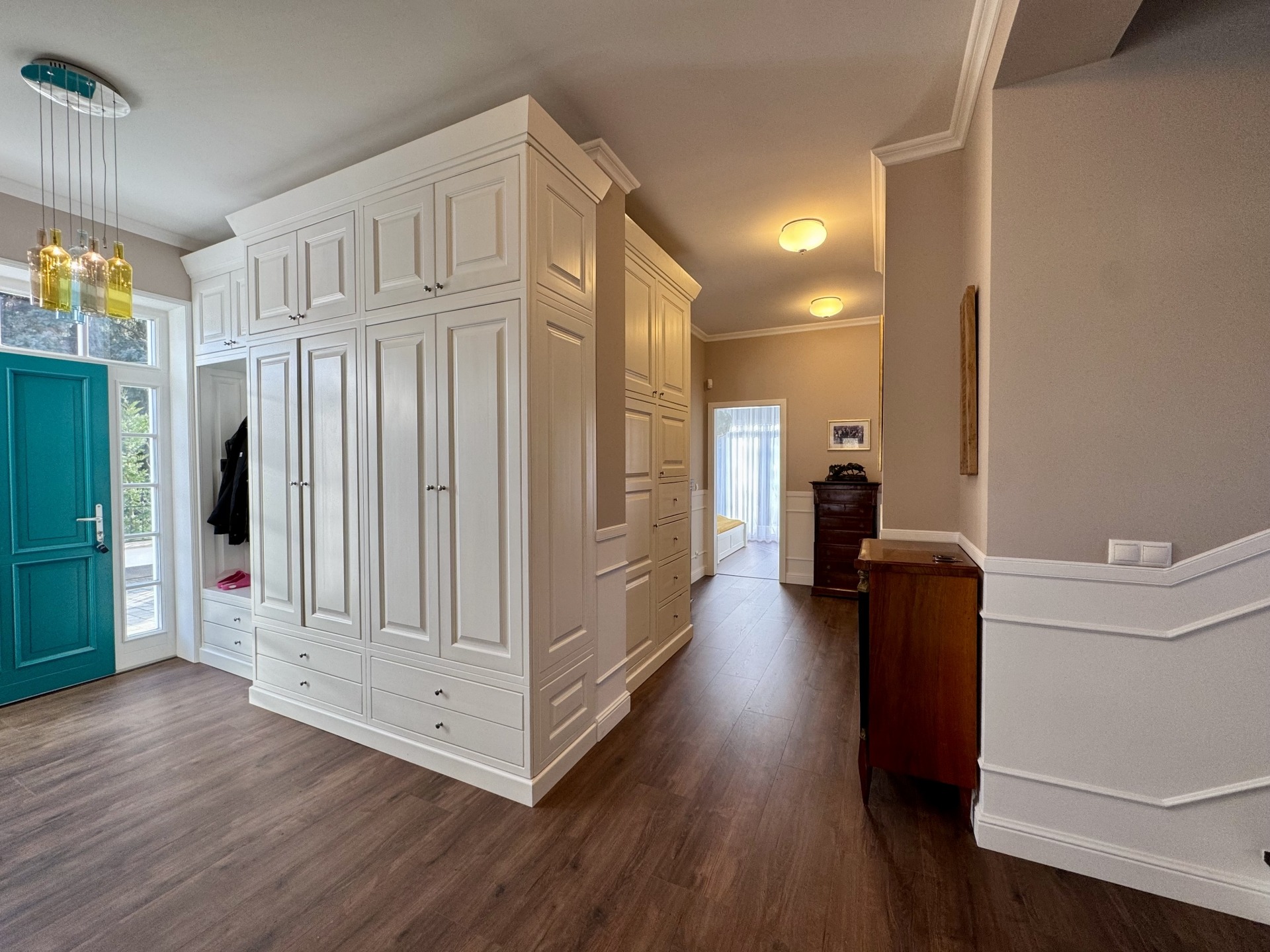 A lakóteret lenyűgöző csillárok, falikarok illetve led világítás teszi még különlegesebbé