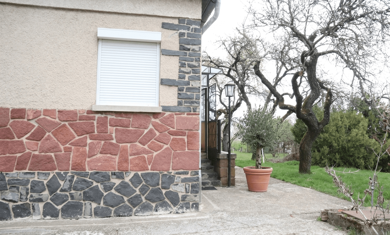 A Balaton közelében, egy 796 nm-es telken található ez a karakteres, vörös terméskőből épült ház, ami nem tökéletes – viszont éppen ezért tele van lehetőséggel.