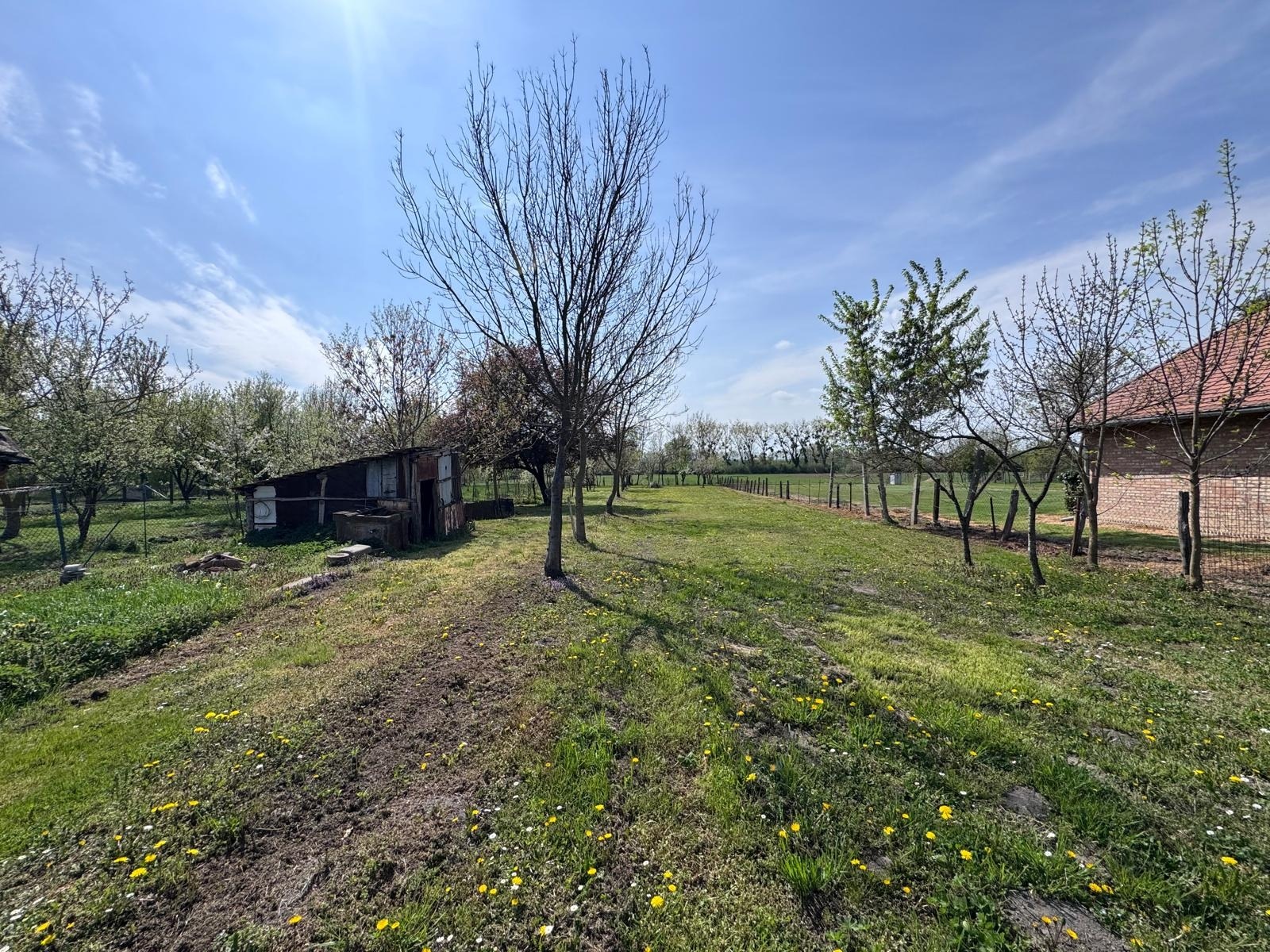 A nagy telek kiváló lehetőséget biztosít kertészkedésre, gazdálkodásra vagy akár további fejlesztésre is.