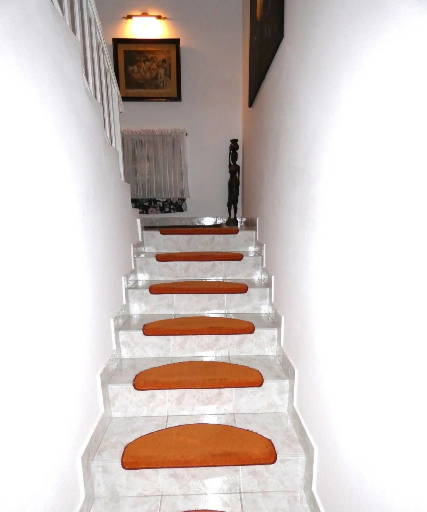 Az emeletre egy zárt lépcsőházon keresztül jutunk fel. Ide megérkezve egy tágas nappali fogad bennünket, melynek minkét oldalán két-két külön bejáratú szoba található. Ezen a szinten helyet kapott még egy főzőfülke, gardrób szoba, fürdőszoba, tároló. Az itteni nappalihoz egy nagy erkély is tartozik, melyről csodálatos a kilátás a Szent György- hegyre. A ház két nappalival, hét szobával, három fürdőszobával és két konyhával rendelkezik, így akár két generáció számára is ideális választás lehet.