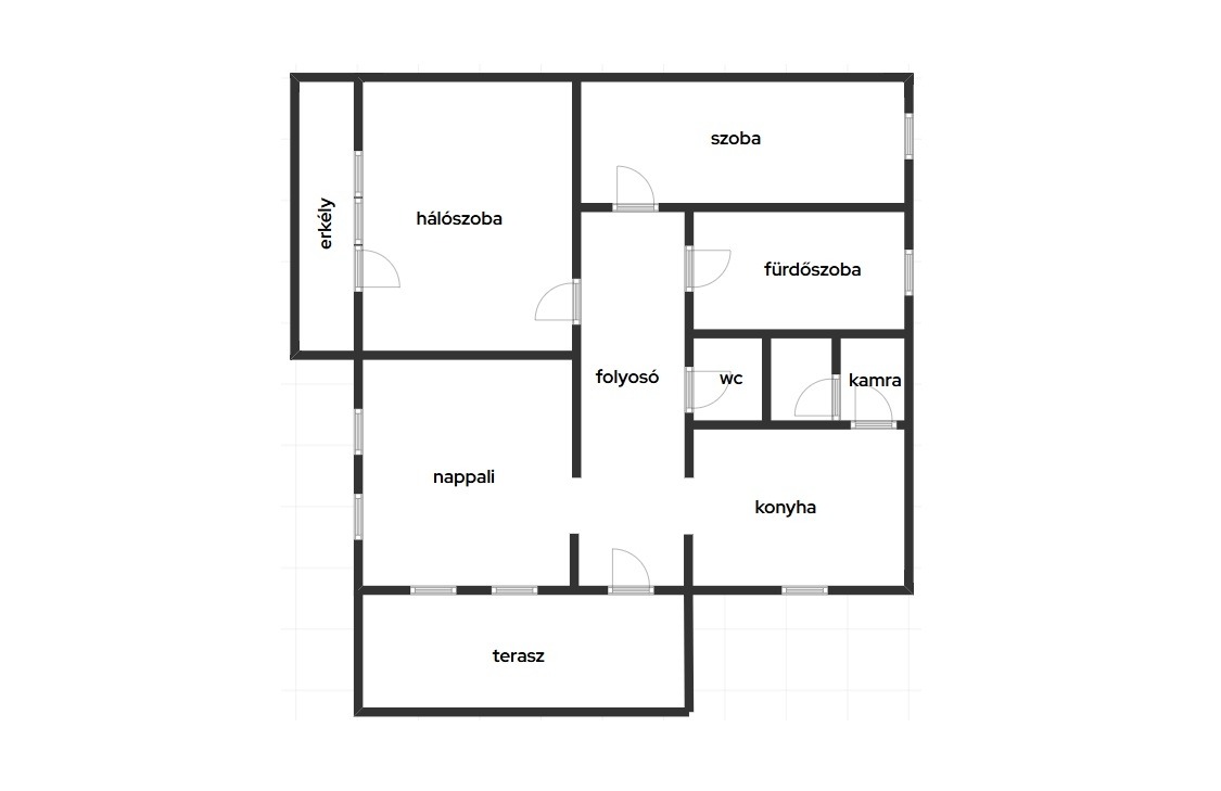 Nappali, 2 szoba, konyha, kamra, fürdőszoba, WC, pince (két helységes kazánház), garázs (belülről és kívülről is megközelíthető)