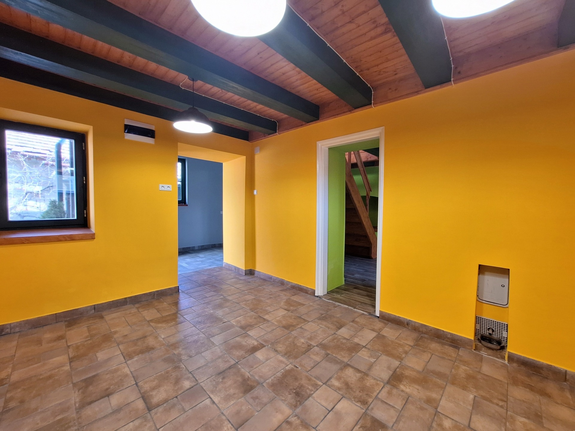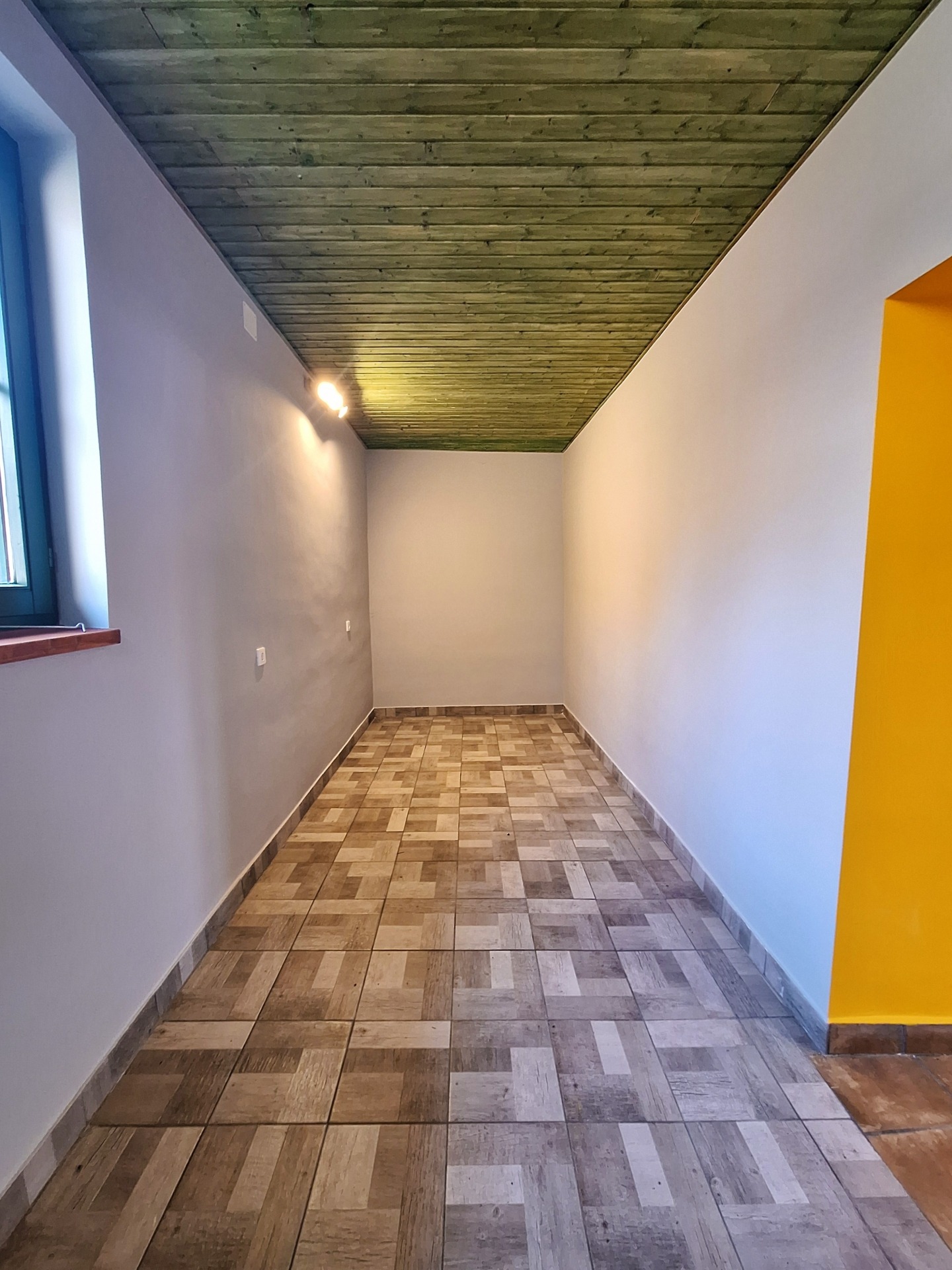 - A főbejáraton belépve előszoba fogad, ahonnan nyílnak a helyiségek: konyha–étkező, fürdőszoba, szoba (innen jutunk fel a tetőtérbe)