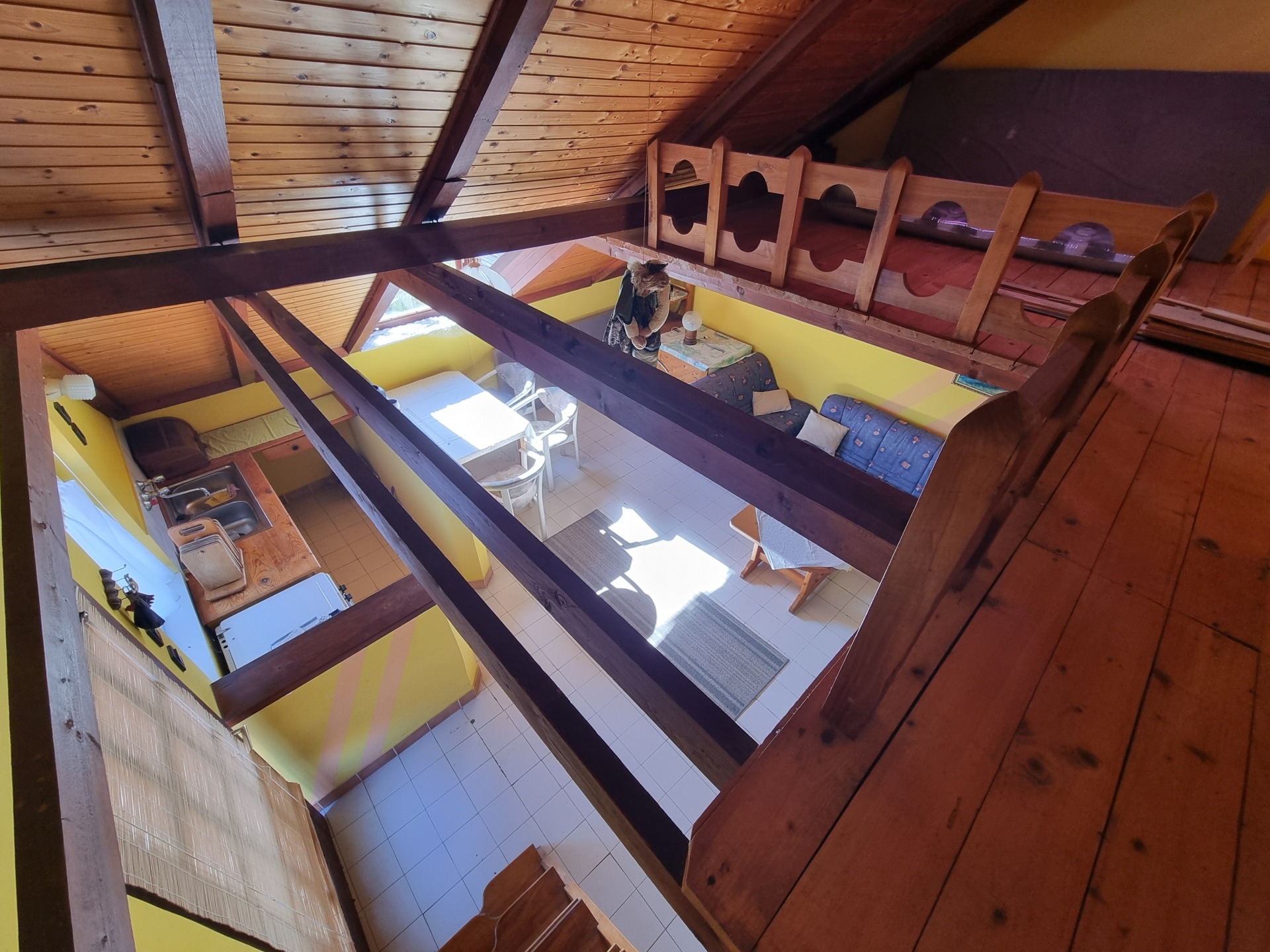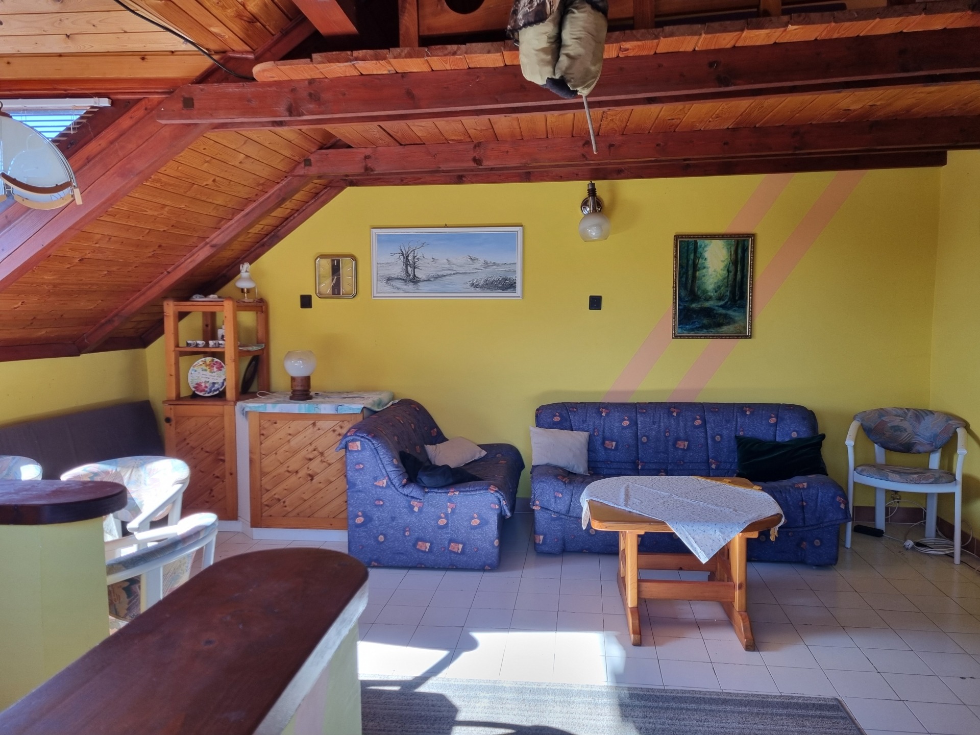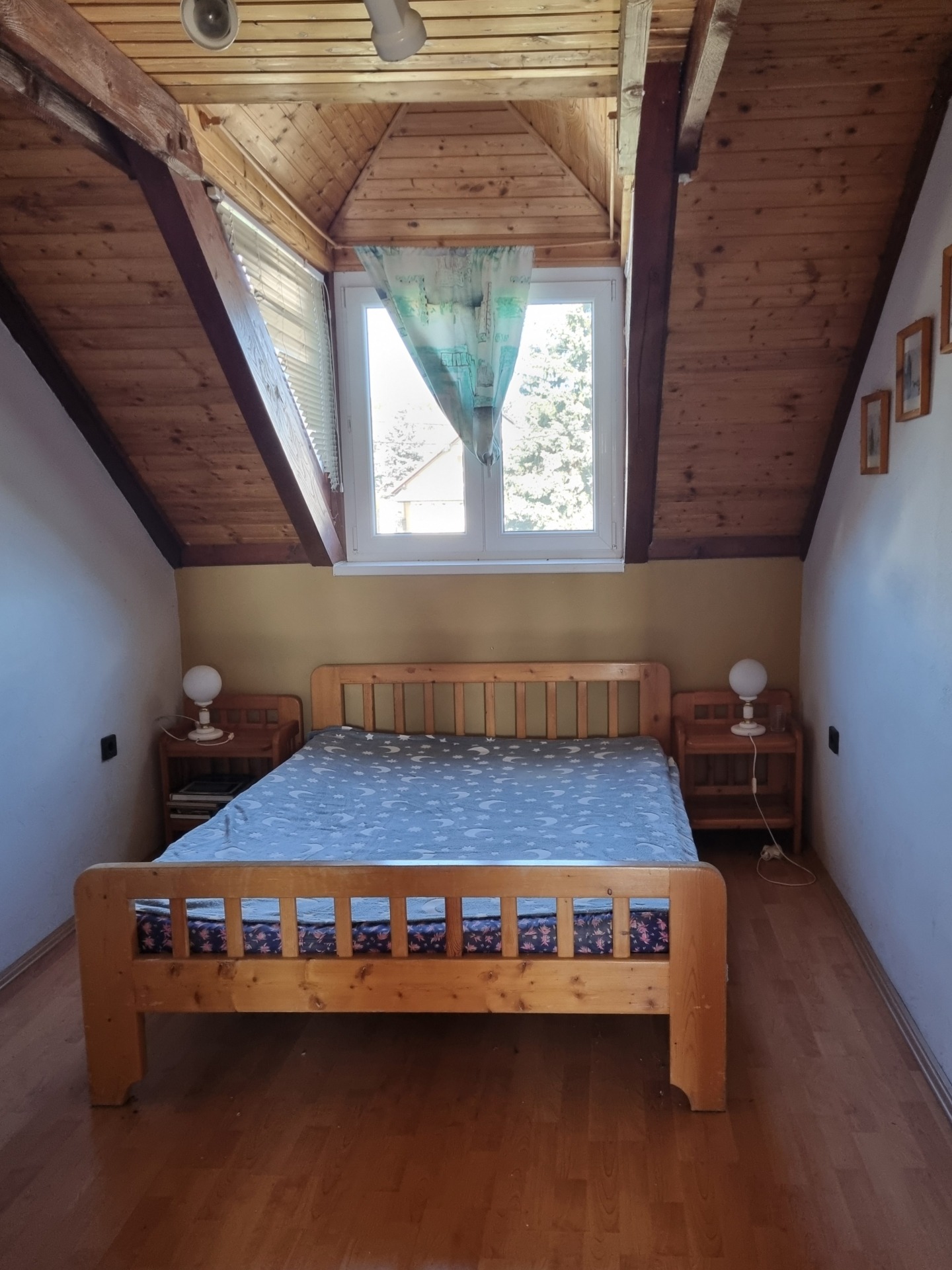 A tetőtérben 1 műanyag, a többi fa nyílászáró található.