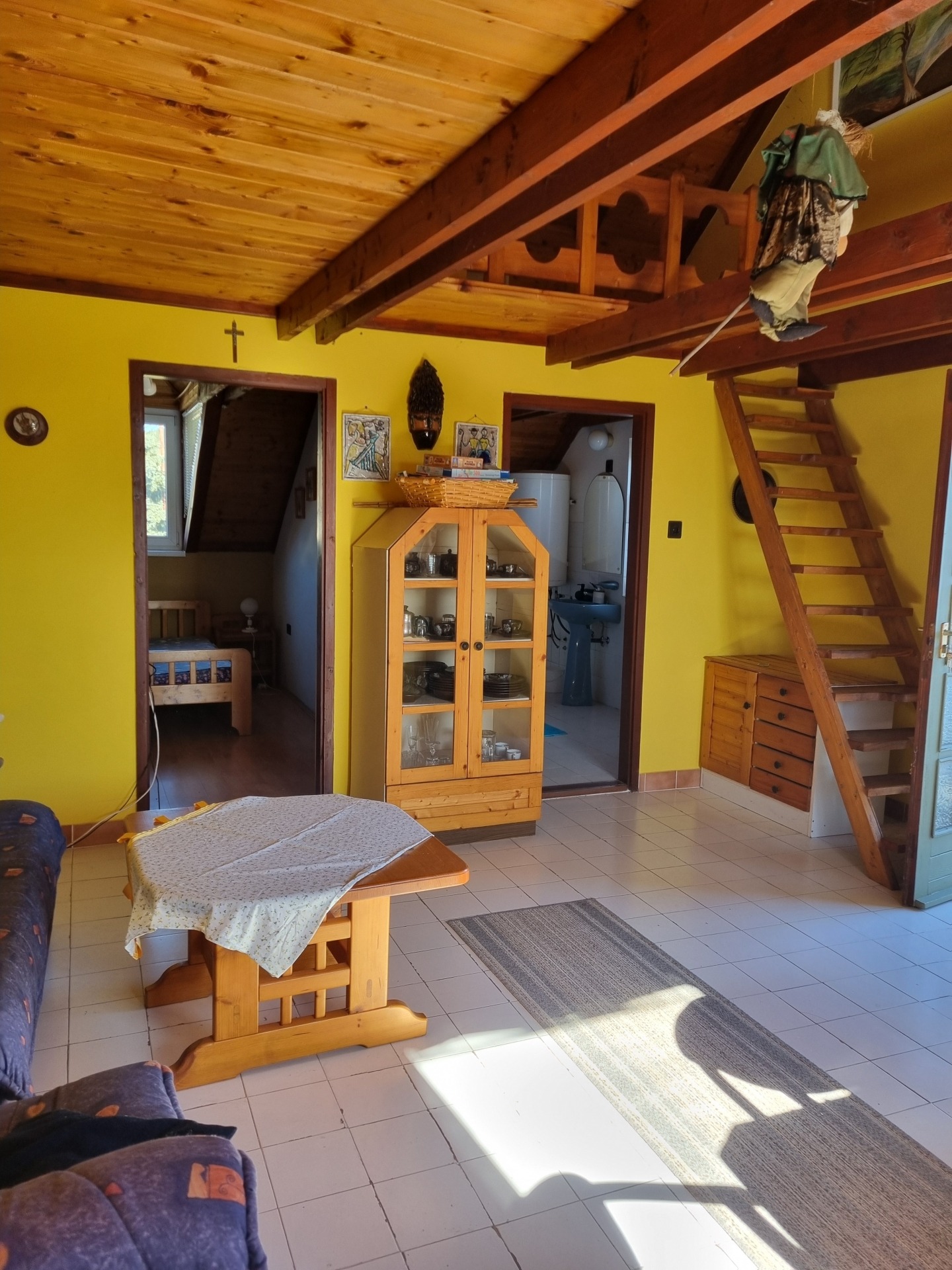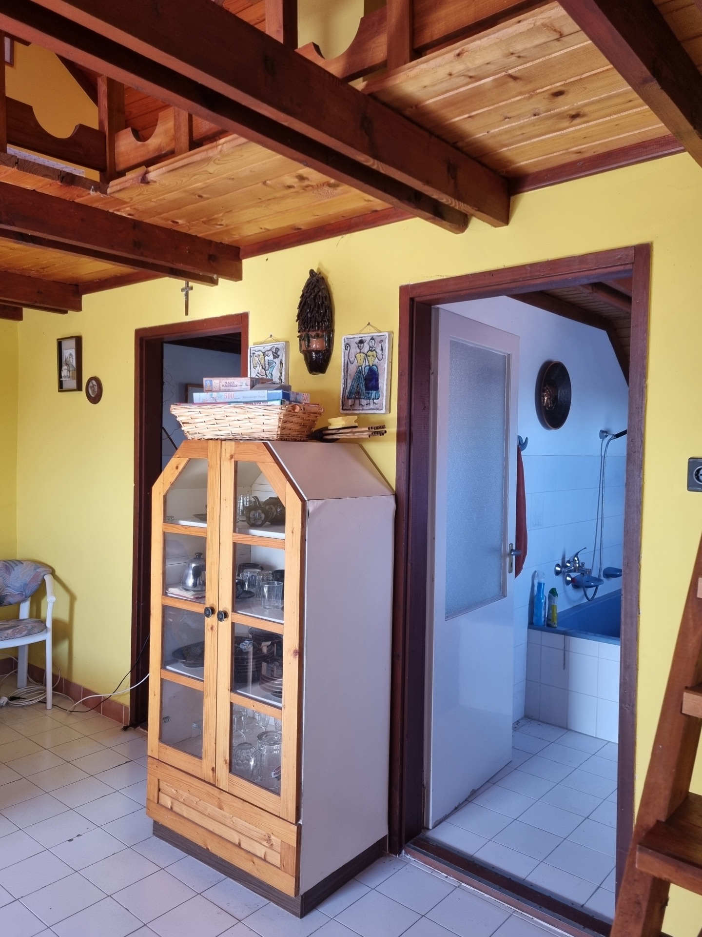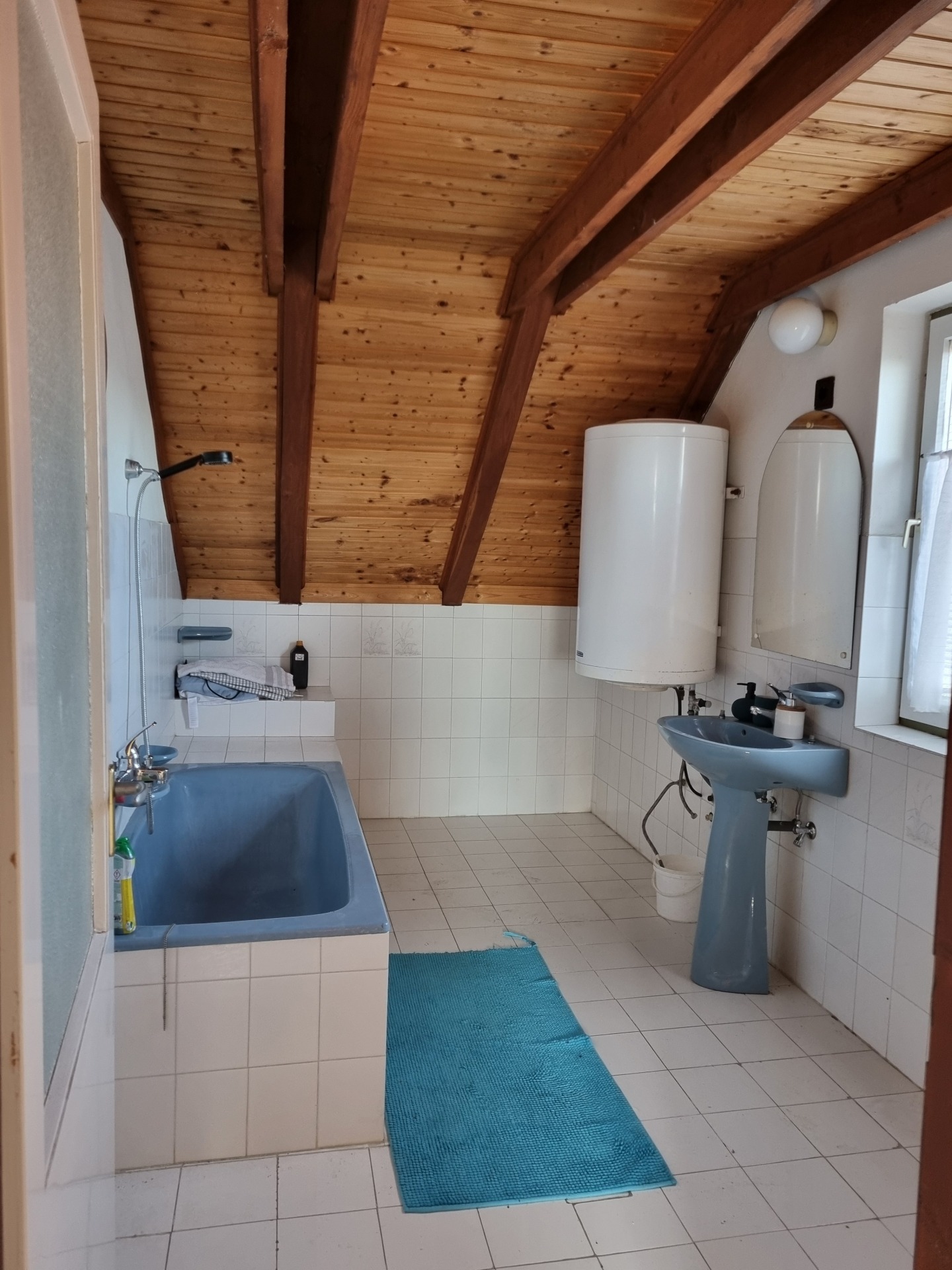 A tetőtérben 1 műanyag, a többi fa nyílászáró található.