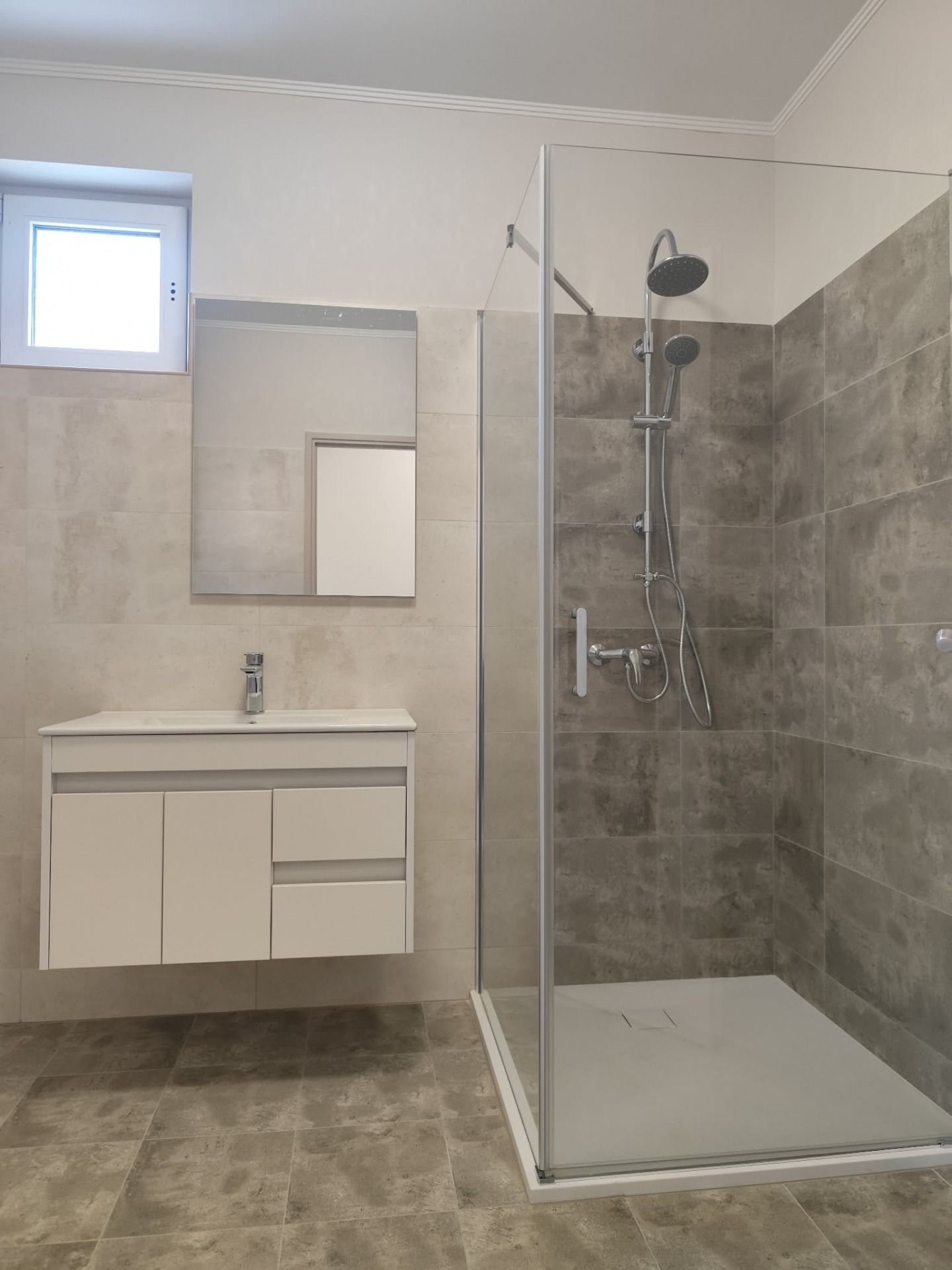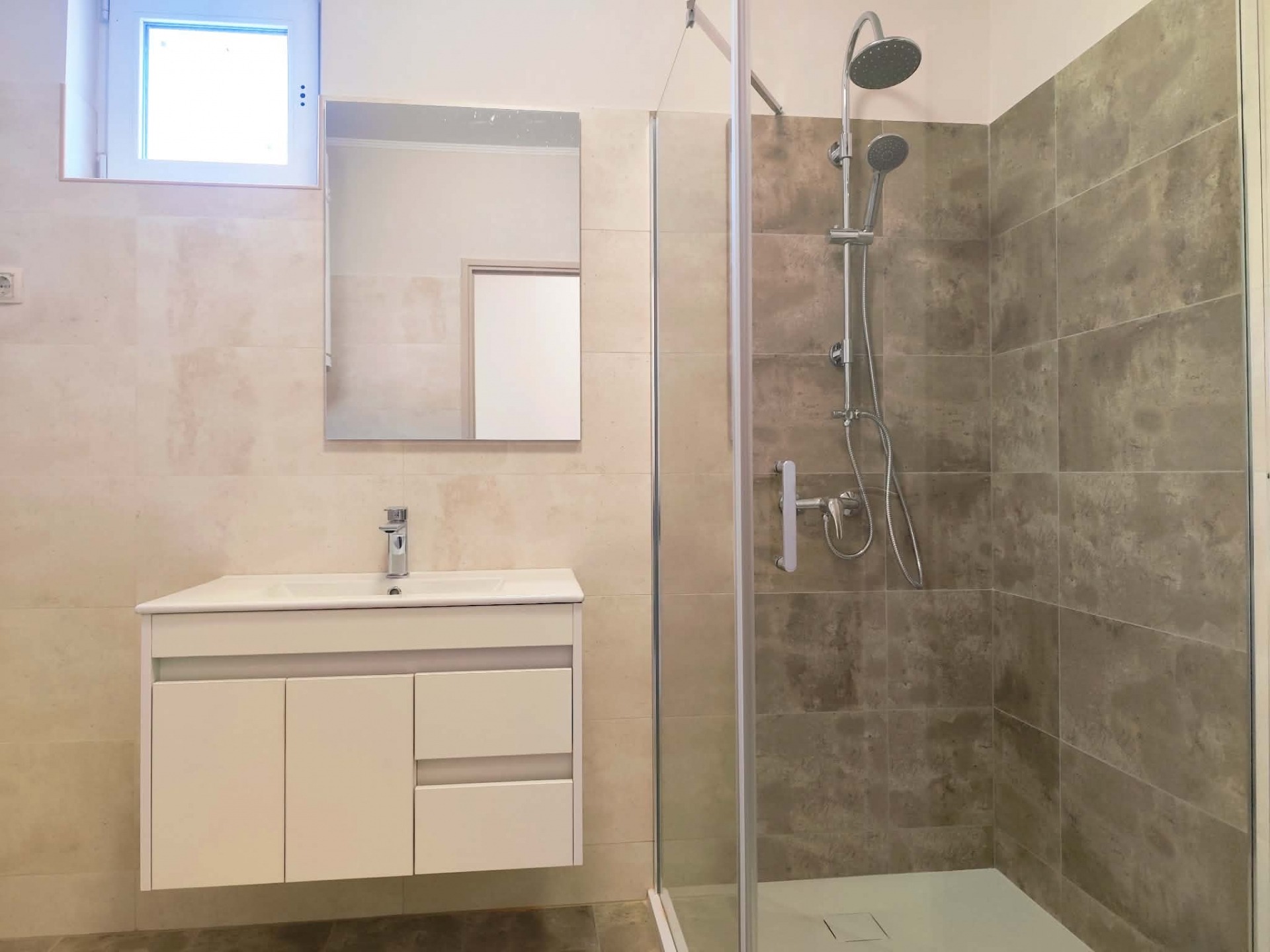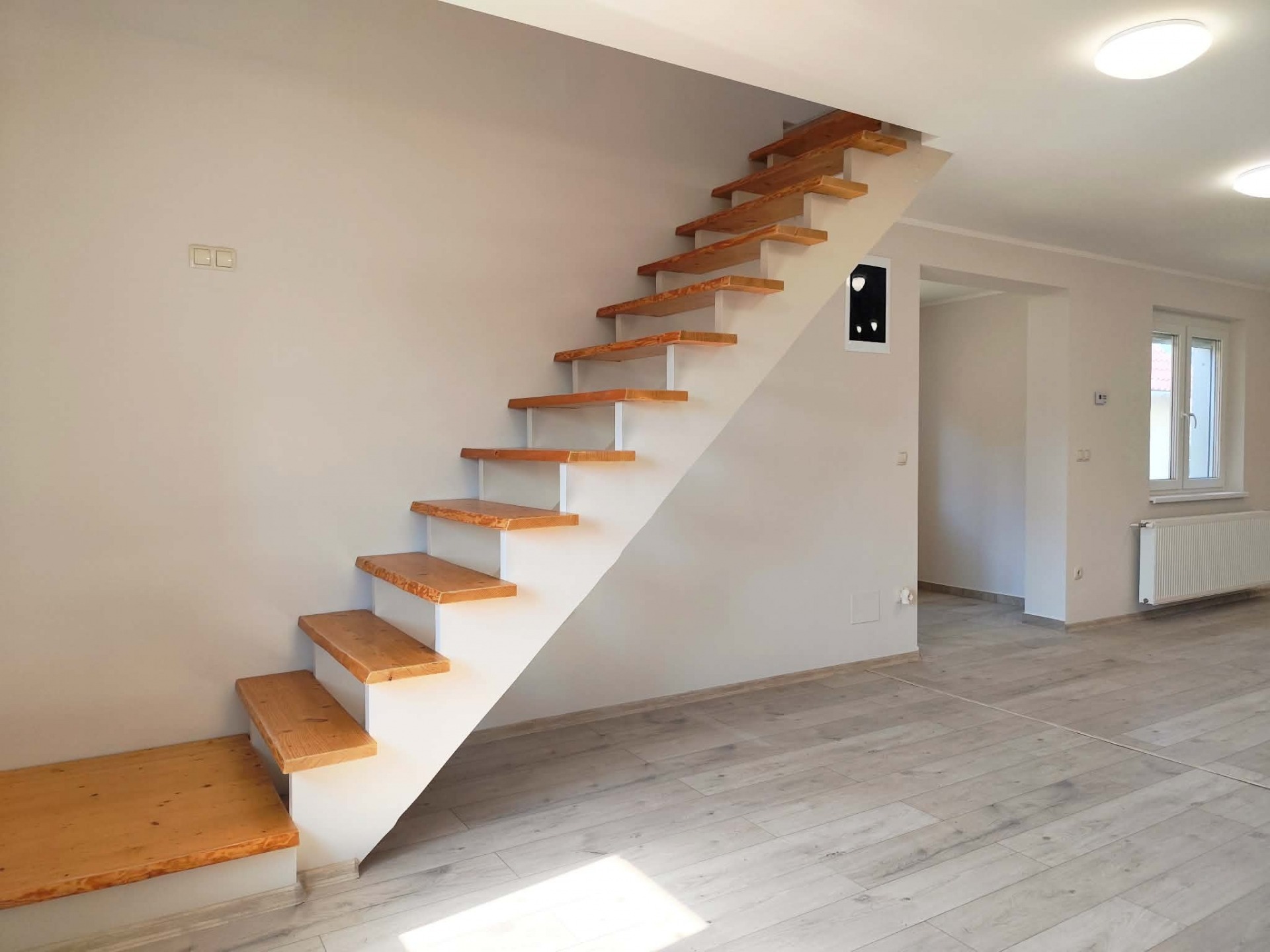 Az alsó szinten egy amerikai konyhás nappalit találunk, egy hálószobával, ezenkívül fürdőszoba, külön WC és tároló került kialakításra.