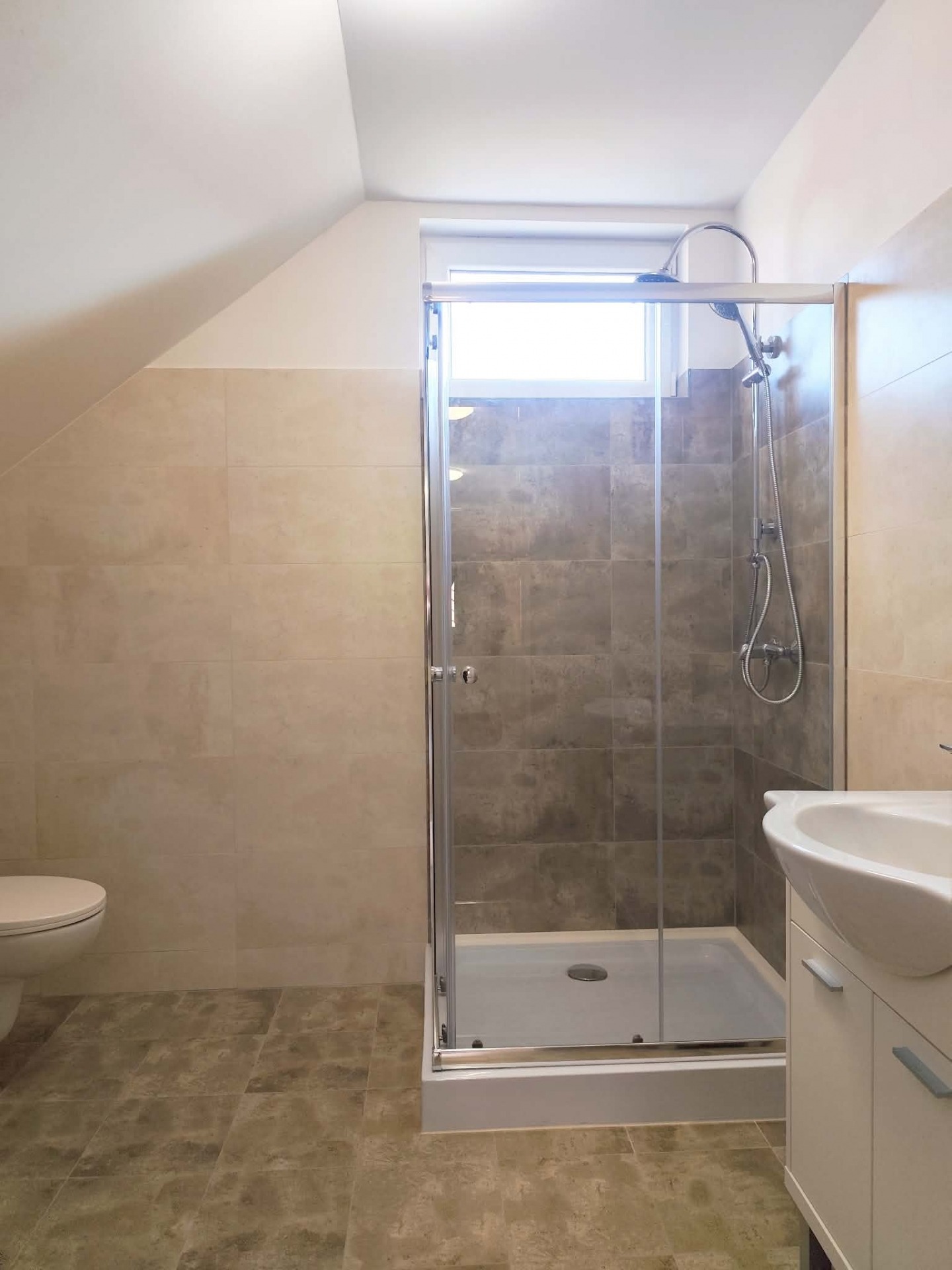 Fenti szinten egy nappaliból nyílik kettő hálószoba, valamint egy fürdő/WC.