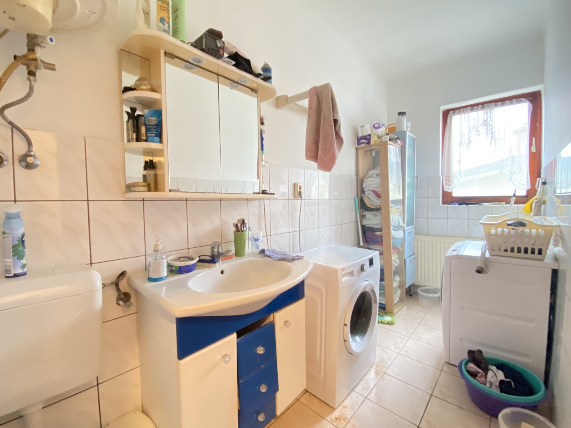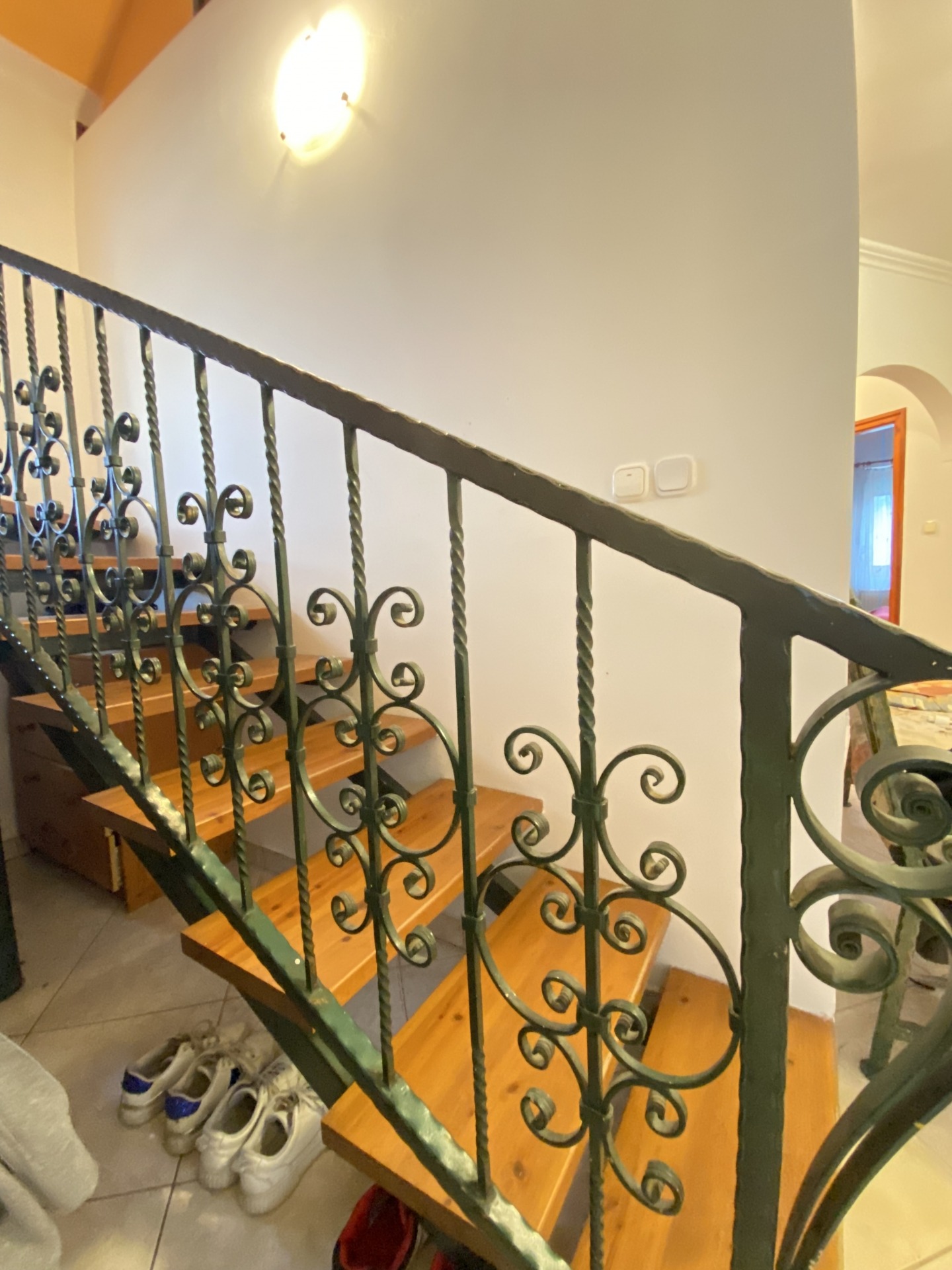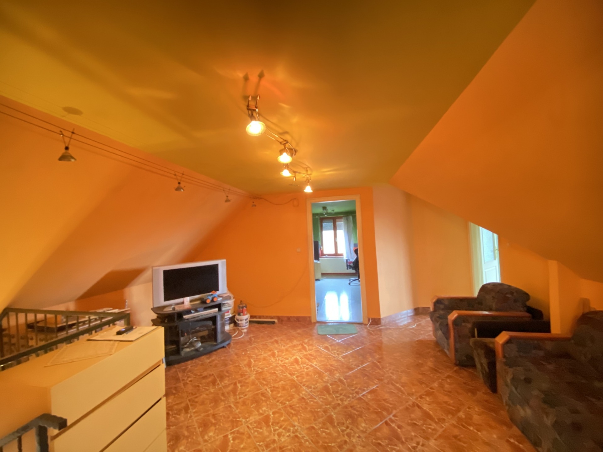 Heating is provided by a solid-fuel boiler and a beautiful tiled stove. A gas connection is available on the property, making gas heating possible if required. The pleasant temperature of the kitchen is ensured by air conditioning.