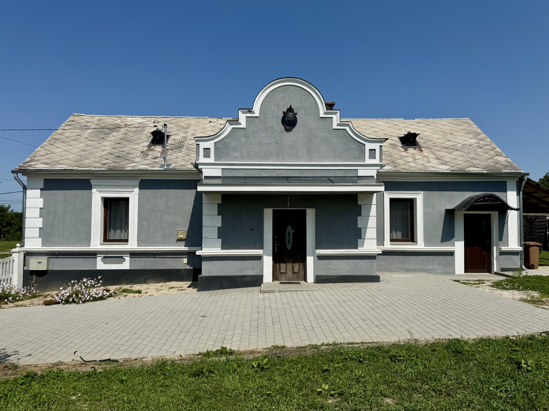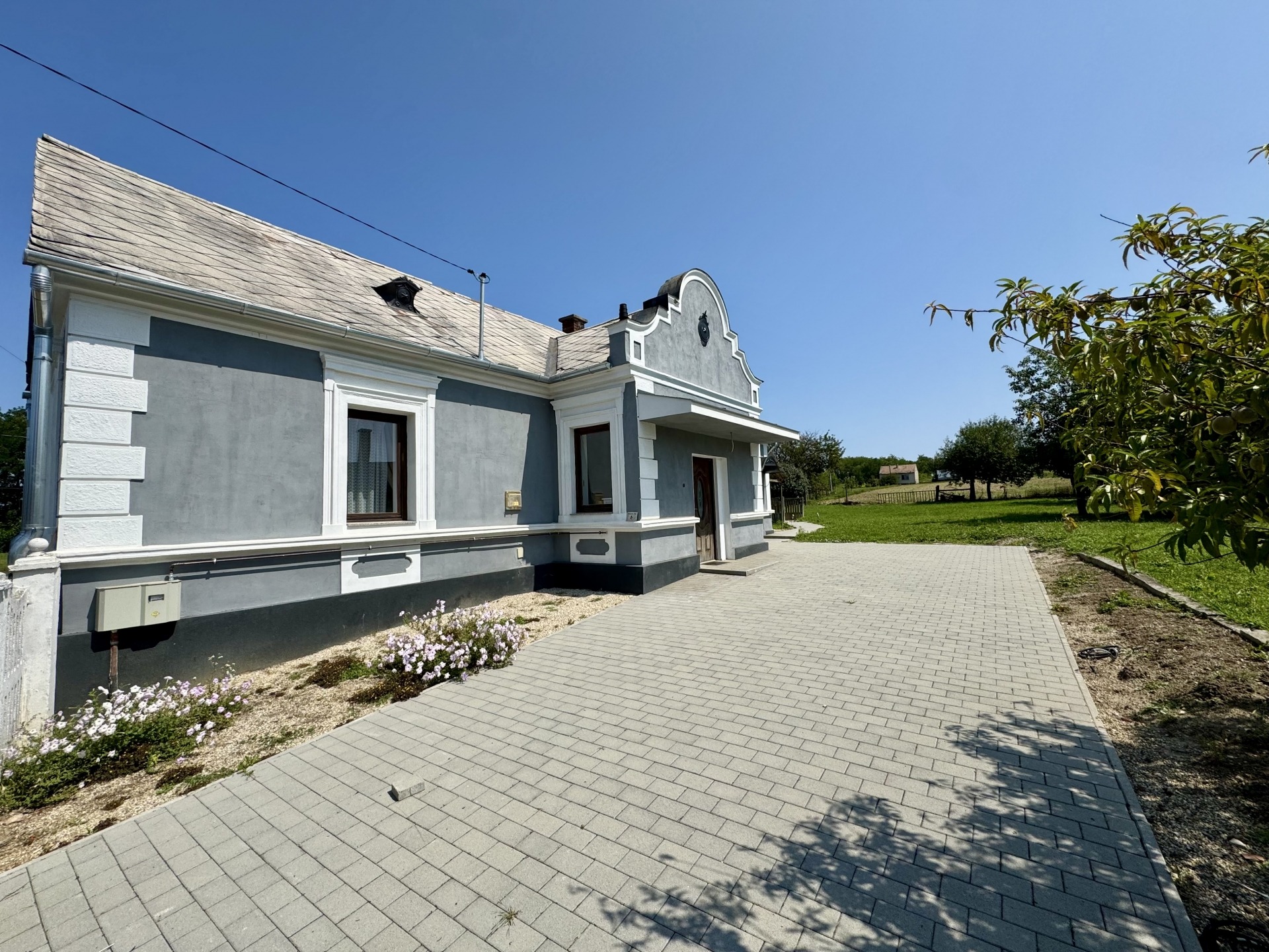 Udvara részben térkővel burkolt.