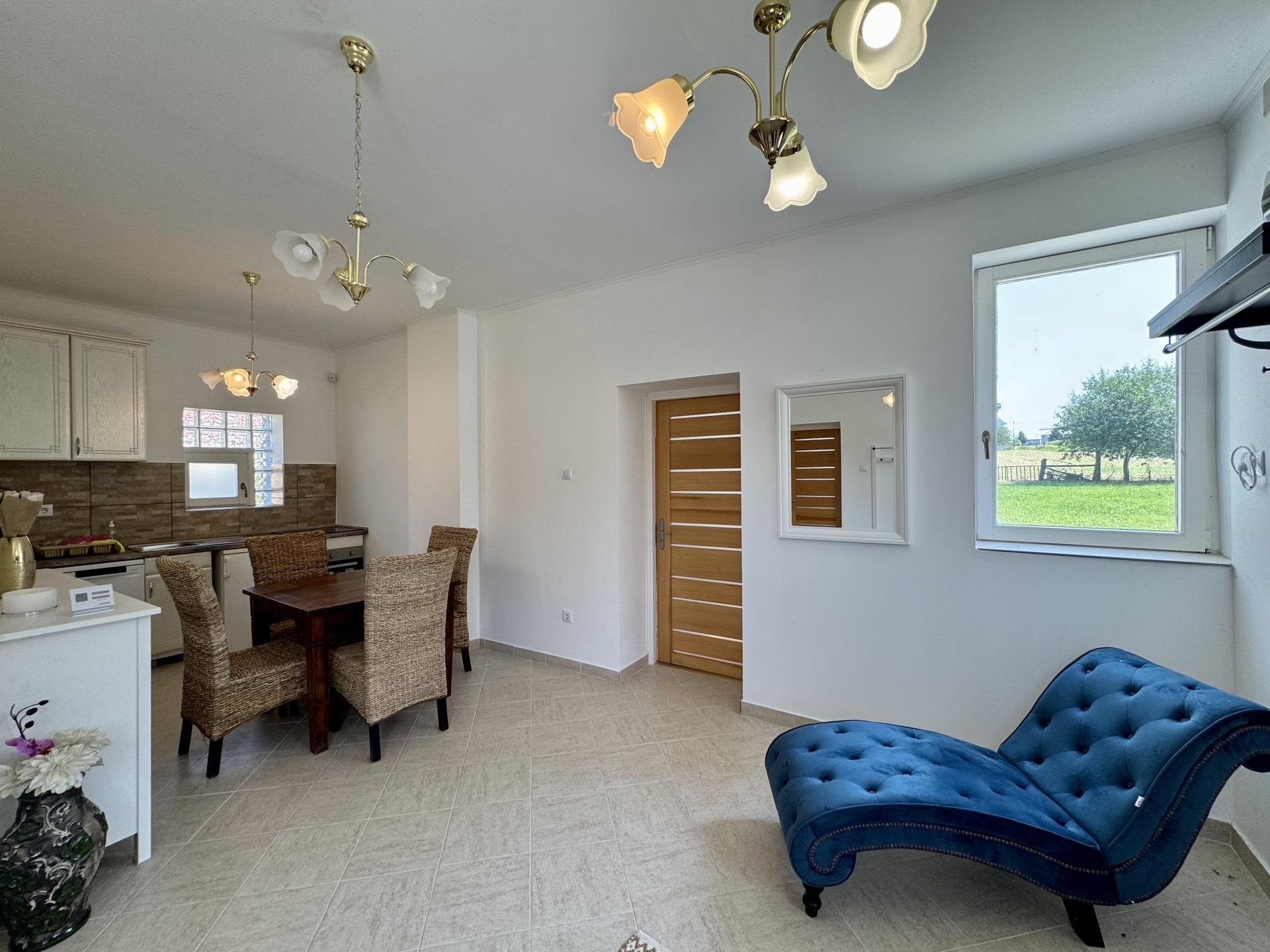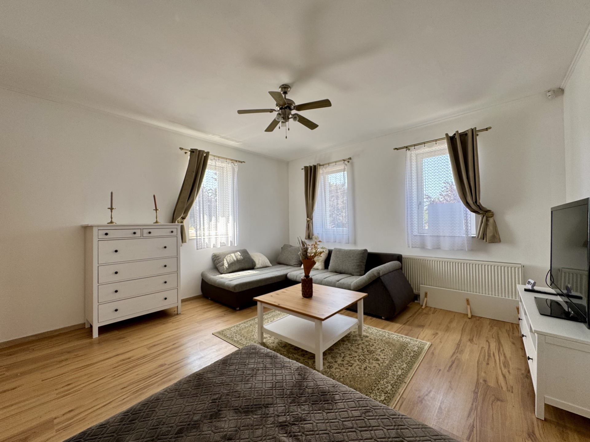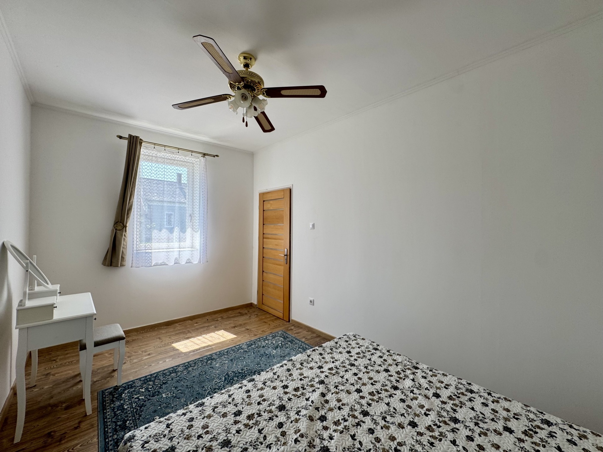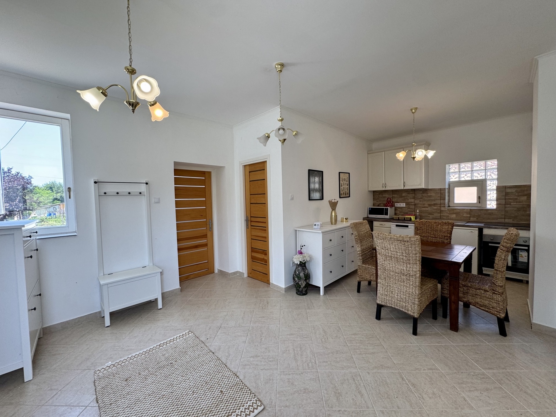 Helyiségek: előtér, konyha-étkező egy légtérben, fürdőszoba-wc, nappali, szoba, gardrób, külön bejáratú tároló helyiség