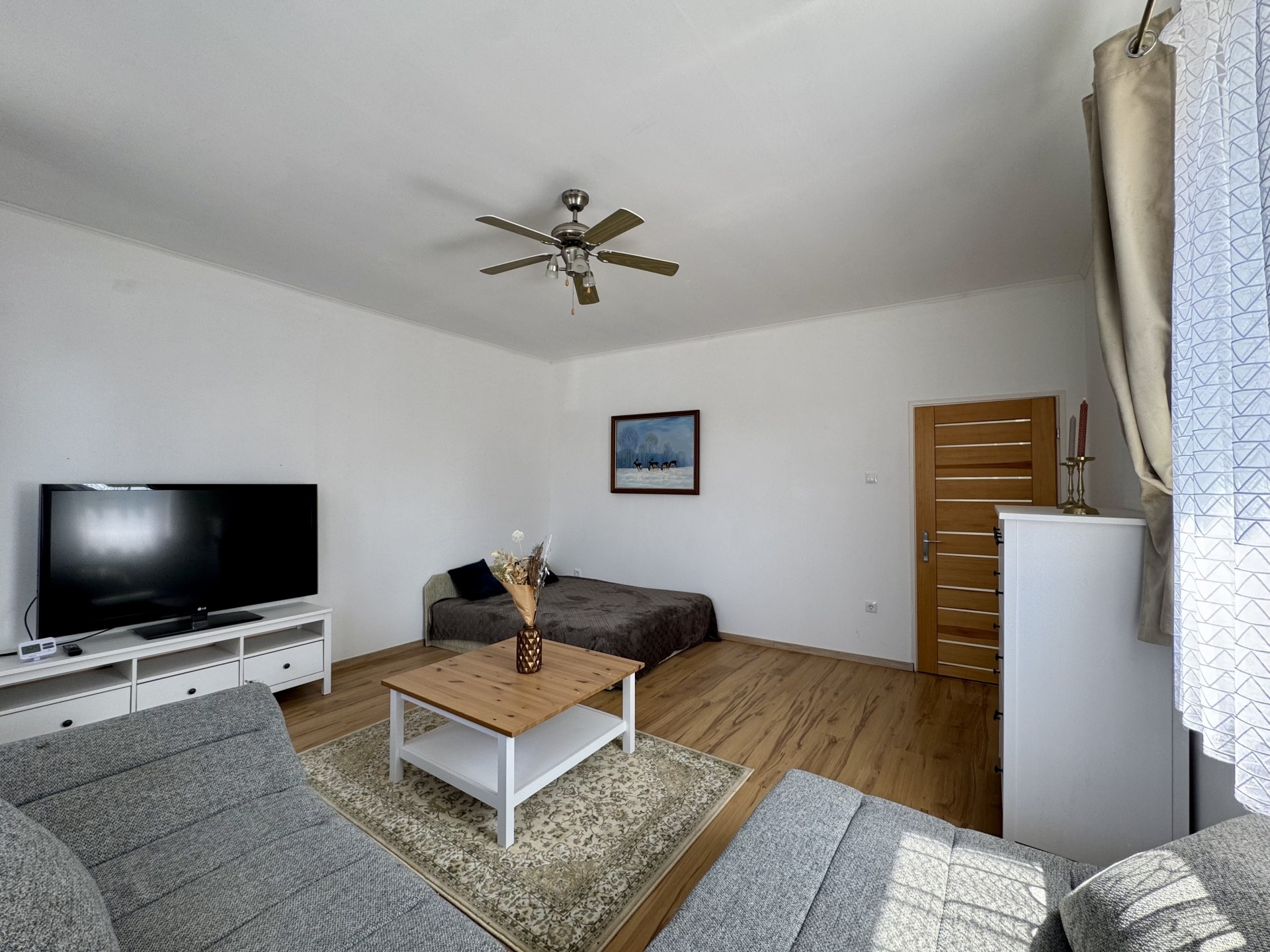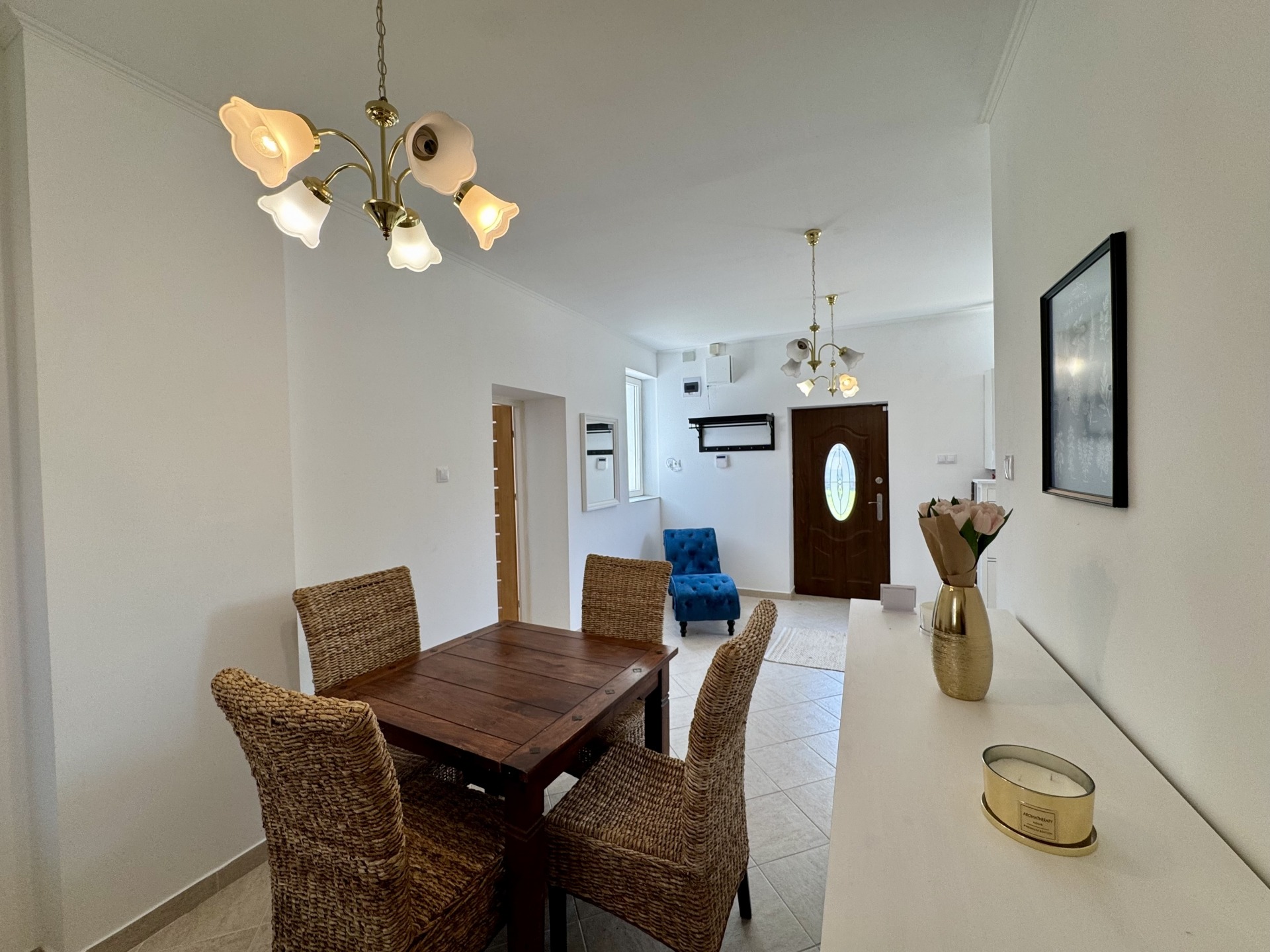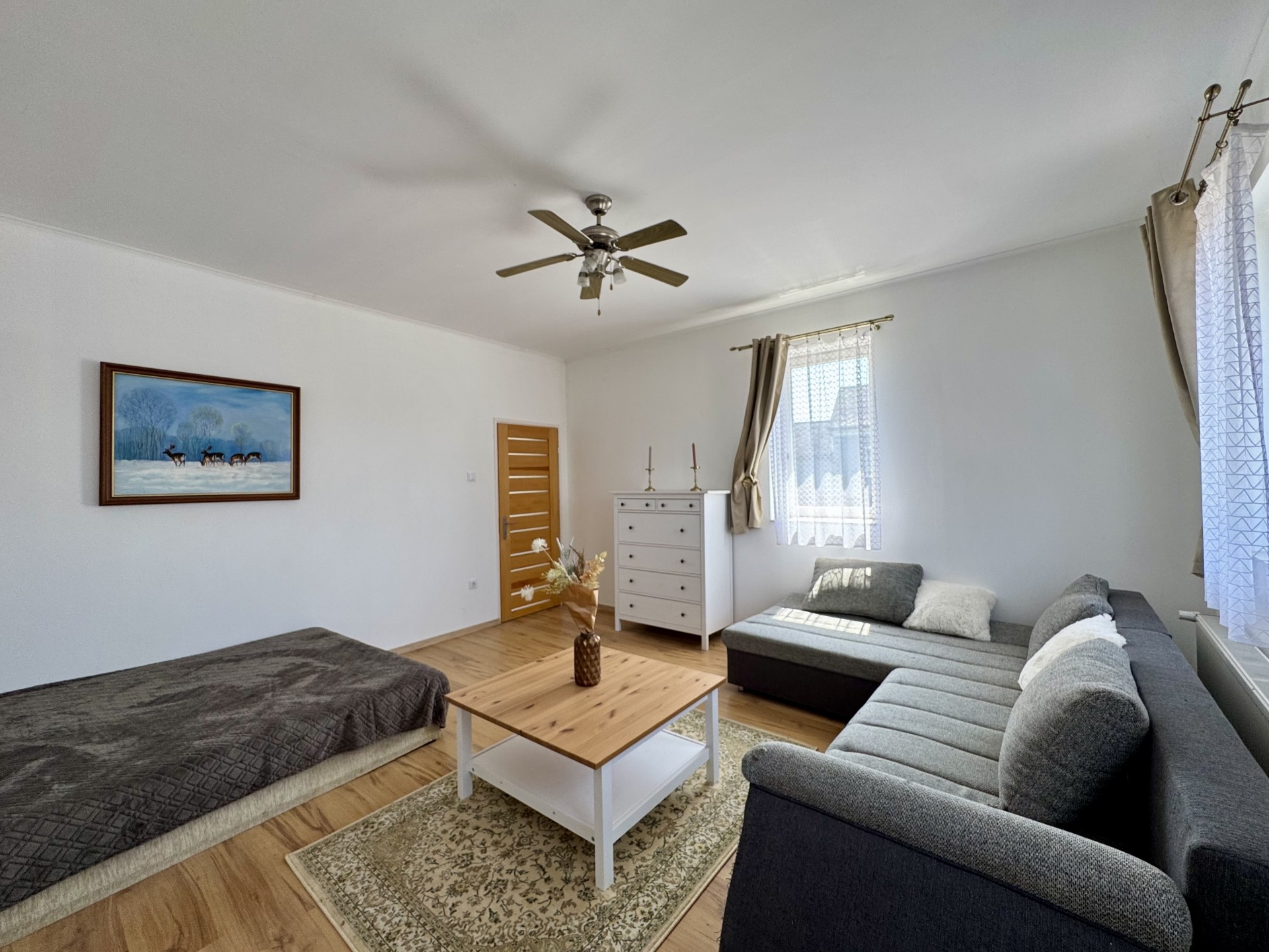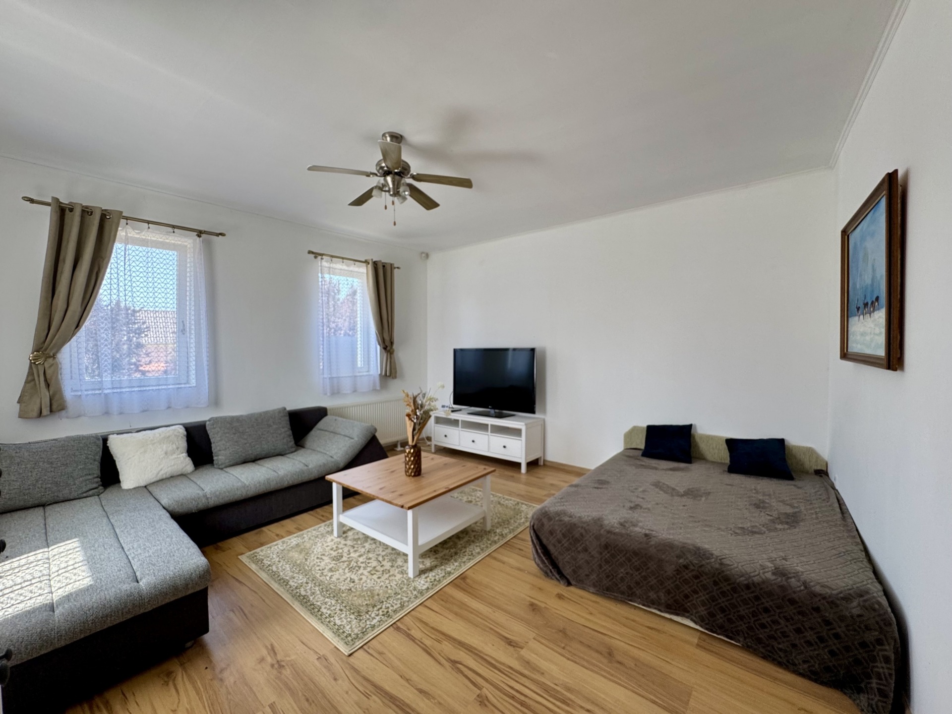 Helyiségek: előtér, konyha-étkező egy légtérben, fürdőszoba-wc, nappali, szoba, gardrób, külön bejáratú tároló helyiség