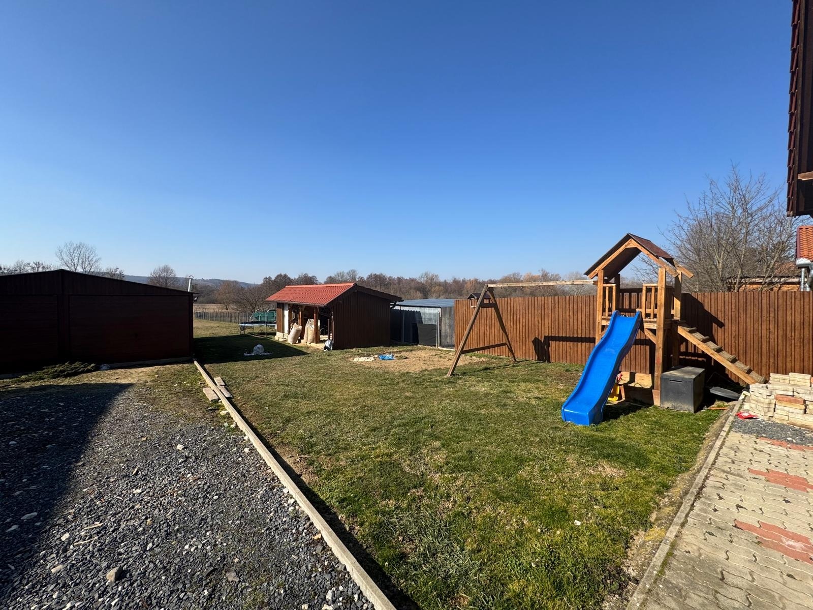 A telek gondozott, sík, gyönyörű kilátással rendelkezik.