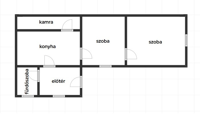 - Helyiségek: 2 szoba, konyha, kamra, előszoba, fürdőszoba